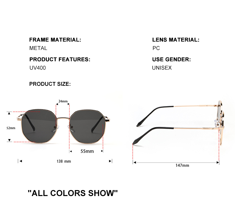 Солнцезащитные очки DDDLONG D38 для мужчин и женщин UV-400, ретро модные квадратные, в металлической оправе, в классическом винтажном стиле
