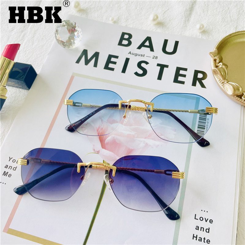 HBK коричневые безрамные золотые металлические женские солнцезащитные очки без оправы синие градиентные солнцезащитные очки для мужчин модные оттенки режущие очки