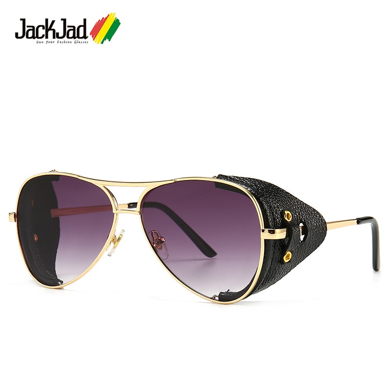 Солнцезащитные очки JackJad, 2020, винтажные, в стиле стимпанк, пилота, кожаные, боковые, брендовые, дизайнерские, солнцезащитные очки, 2029