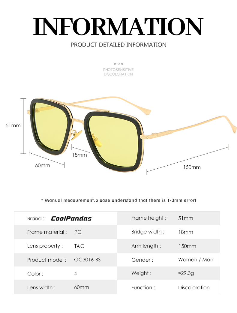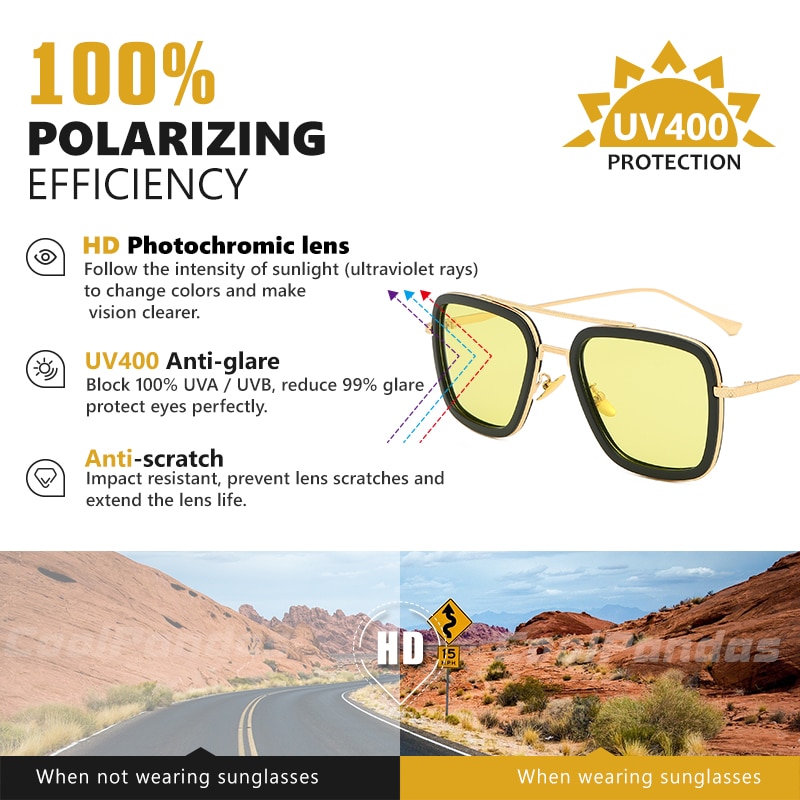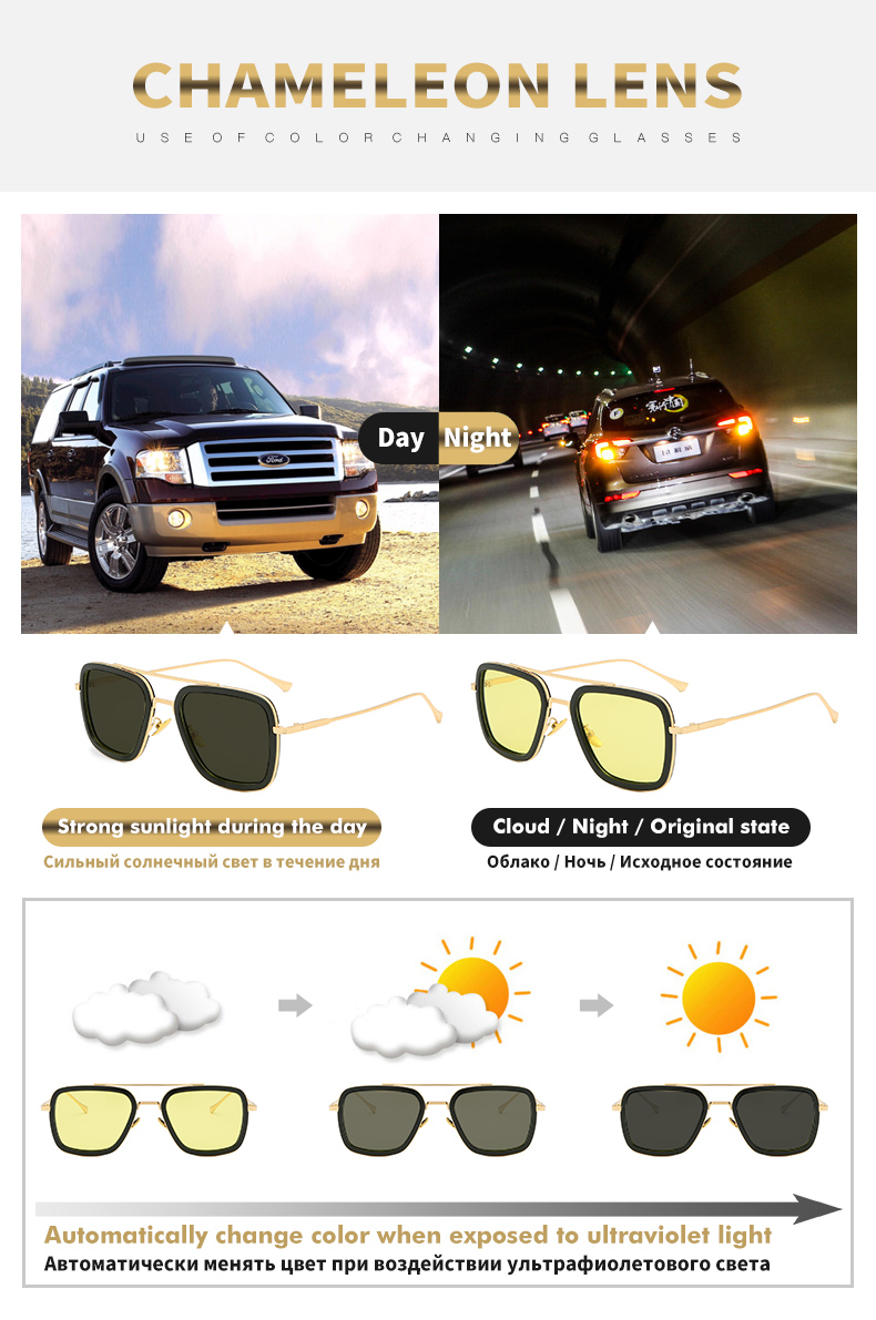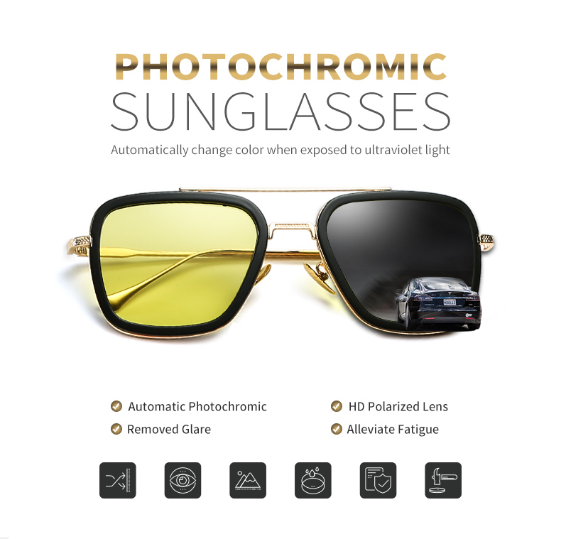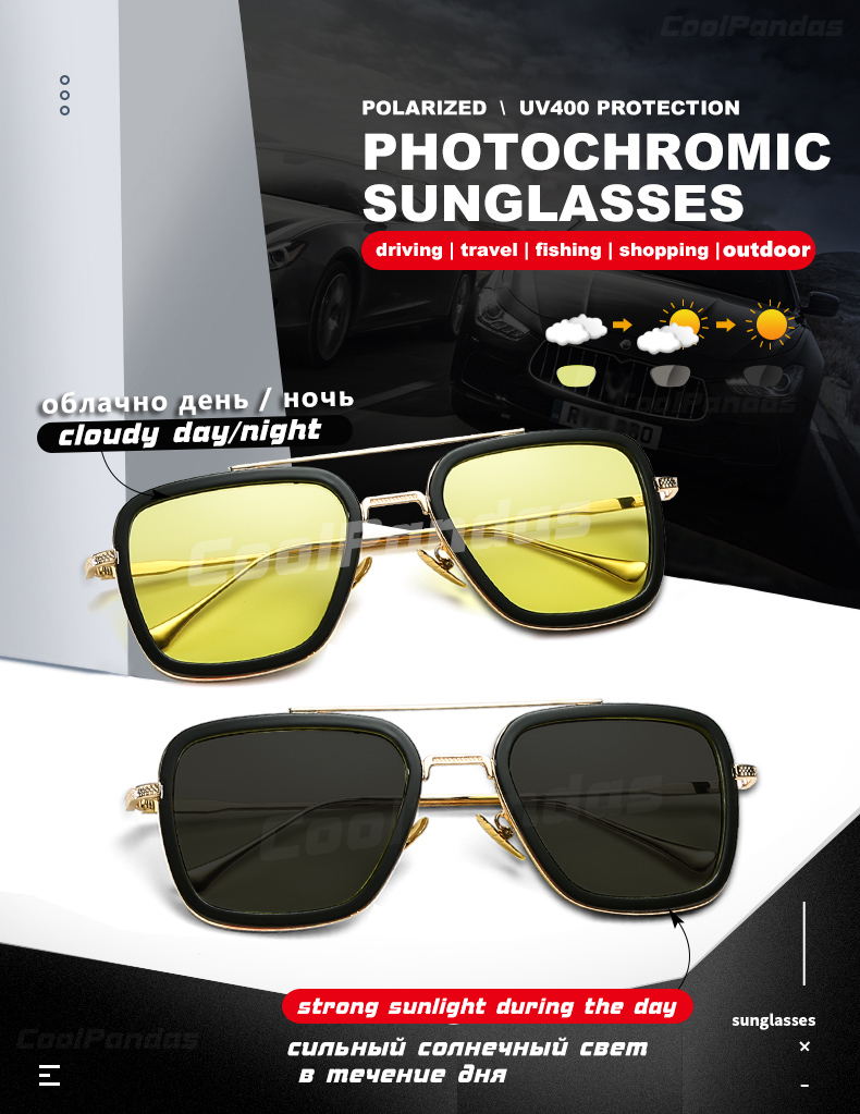 Солнцезащитные очки Мужские квадратные фотохромные, поляризационные, с желтыми линзами