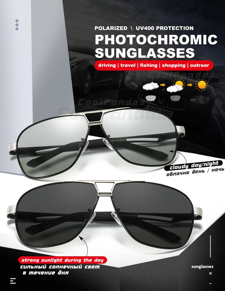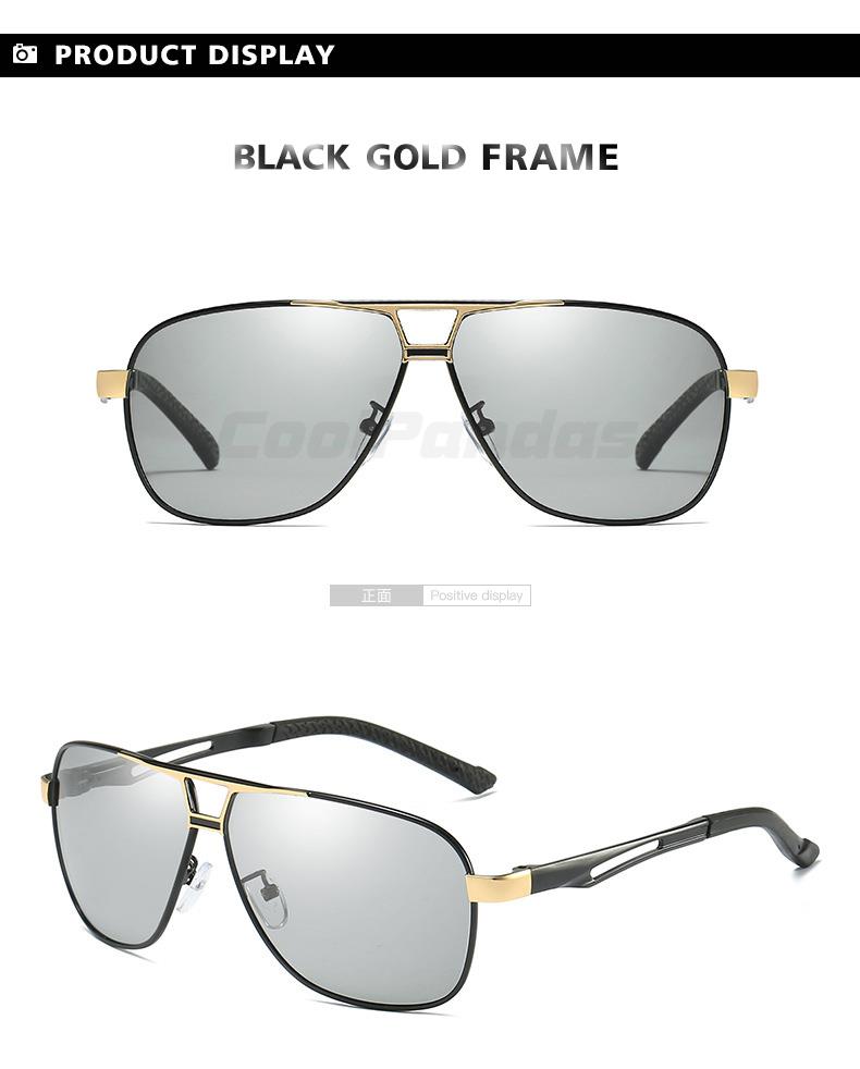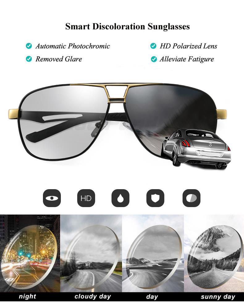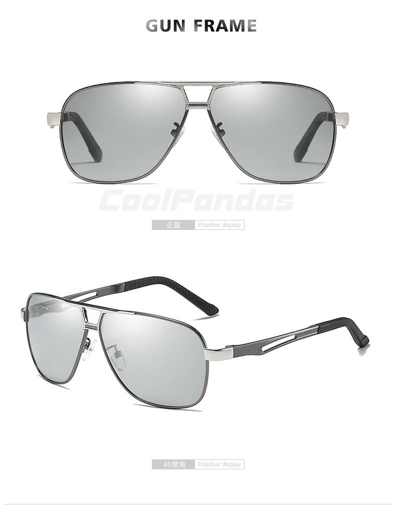 Солнцезащитные очки Мужские поляризационные, квадратные фотохромные солнечные очки из алюминиево-магниевого сплава, в стиле милитари, для вождения
