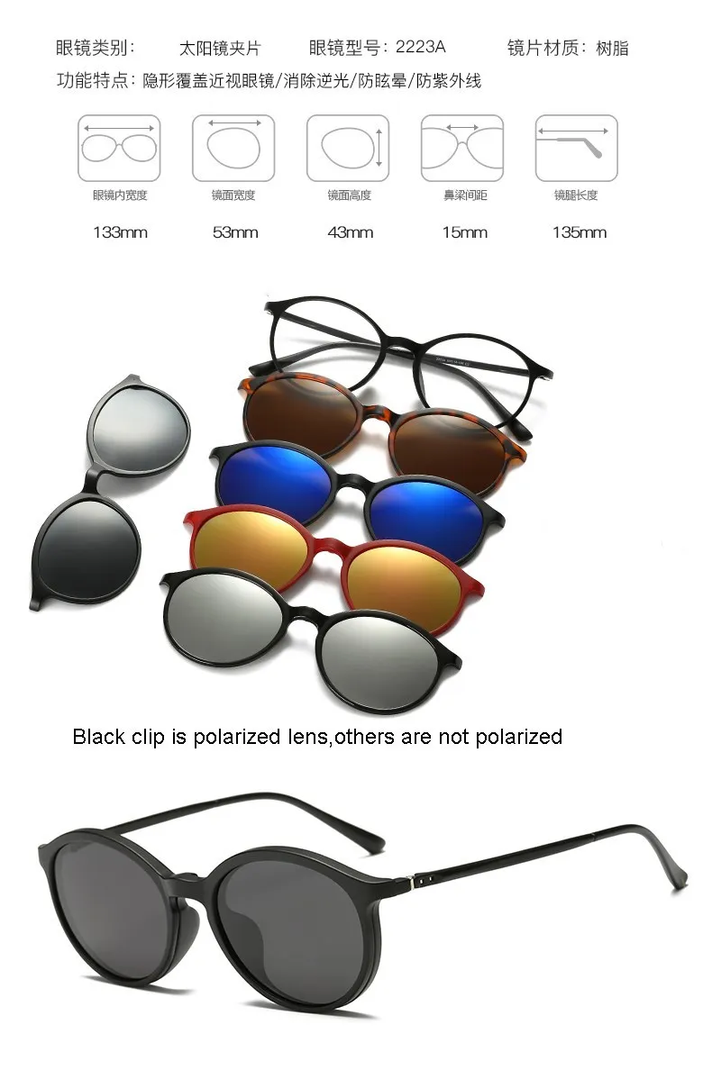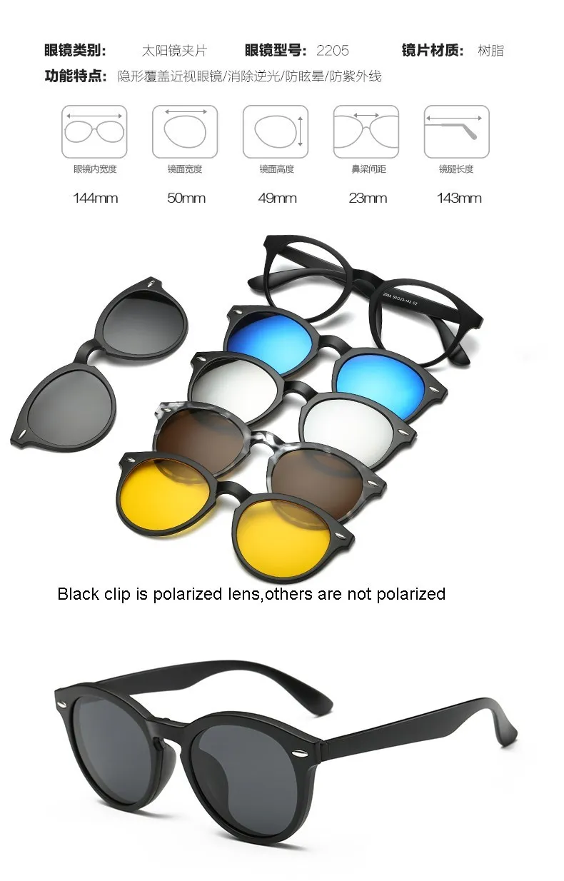 5 лент Магнитные солнцезащитные очки Клип Polaroid Зеркальные магнитные солнцезащитные очки Клип на очках Мужчины Поляризованные Пользовательские Рецепт Близорукость