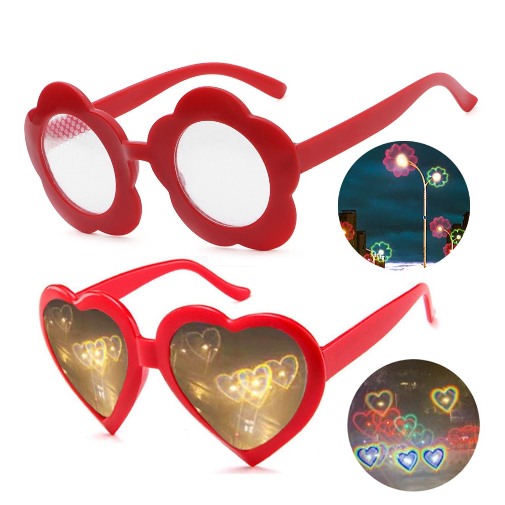 Солнцезащитные очки с забавными сердечками/цветами и эффектами дифракции