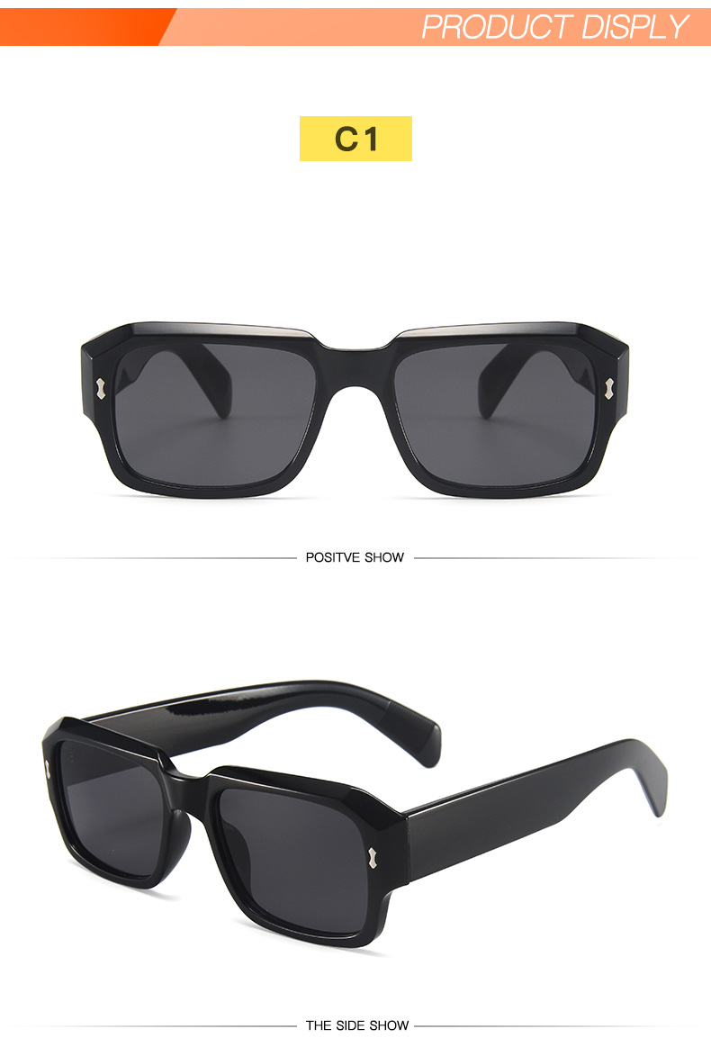 Солнцезащитные очки с заклепками для мужчин и женщин, винтажные солнечные аксессуары в квадратной оправе, модные популярные, в стиле ретро, в стиле хип-хоп