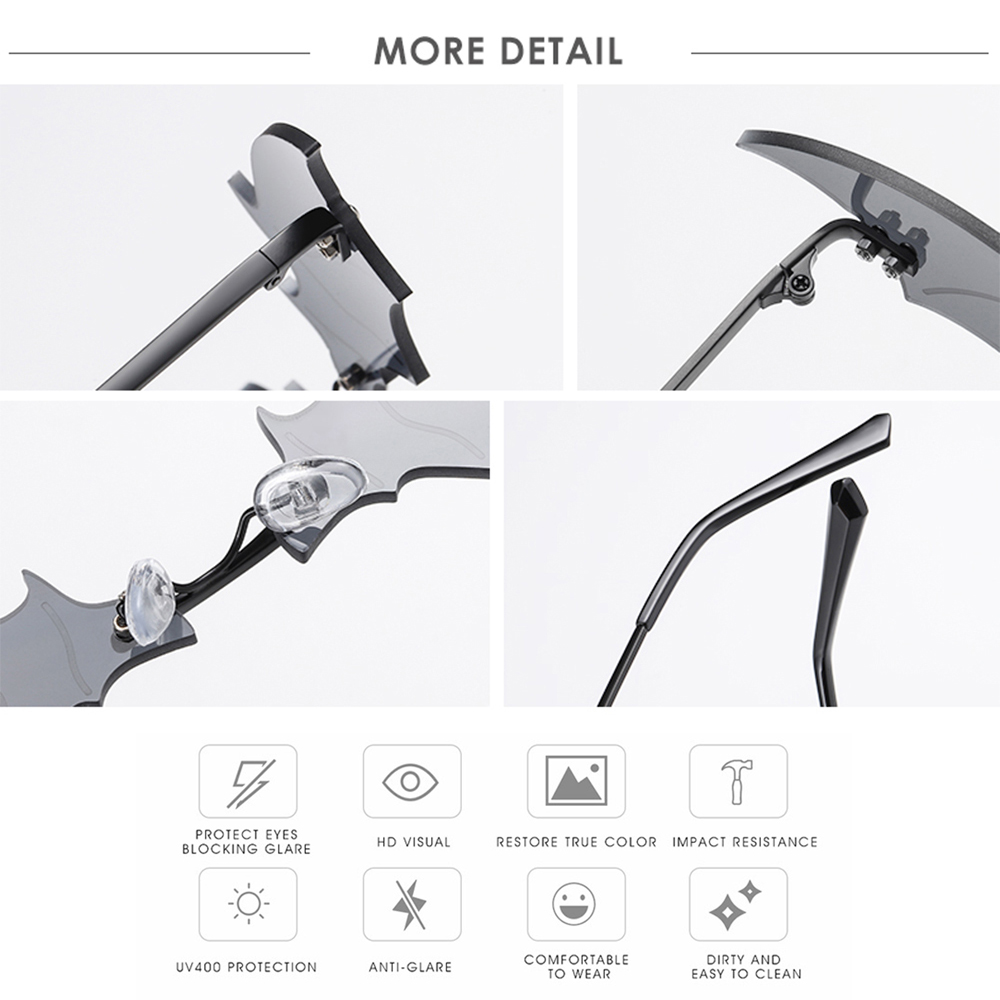3. Стильный дизайн-солнцезащитные очки без оправы в форме летучей мыши в стиле ретро, это отличные трендовые модные аксессуары в уличном стиле.