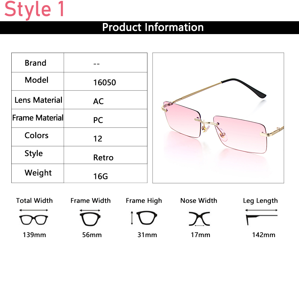 Посылка в комплекте: 1 Прямоугольные солнцезащитные очки без оправы