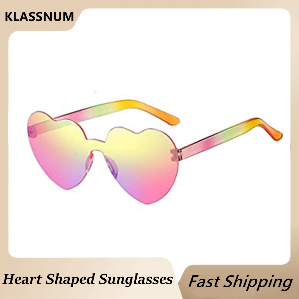 Солнцезащитные очки в форме сердца, красочная оправа без оправы, градиентные линзы, солнцезащитные очки, конфетные цвета, смешные Фотообои