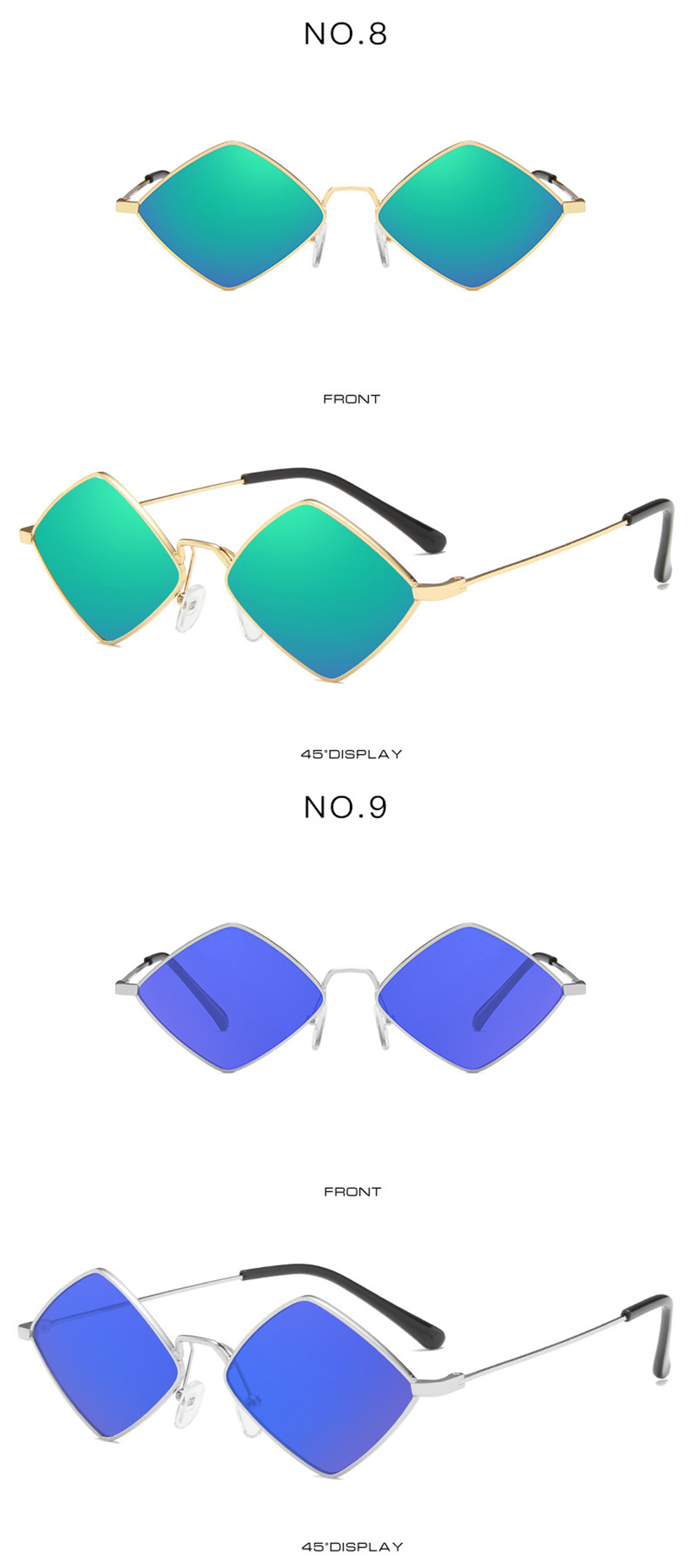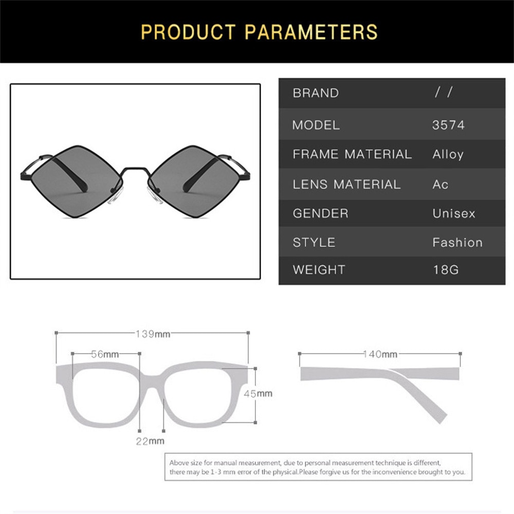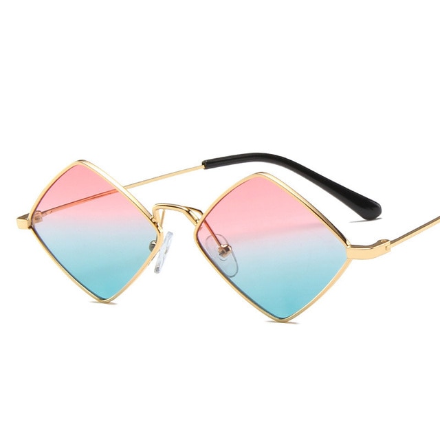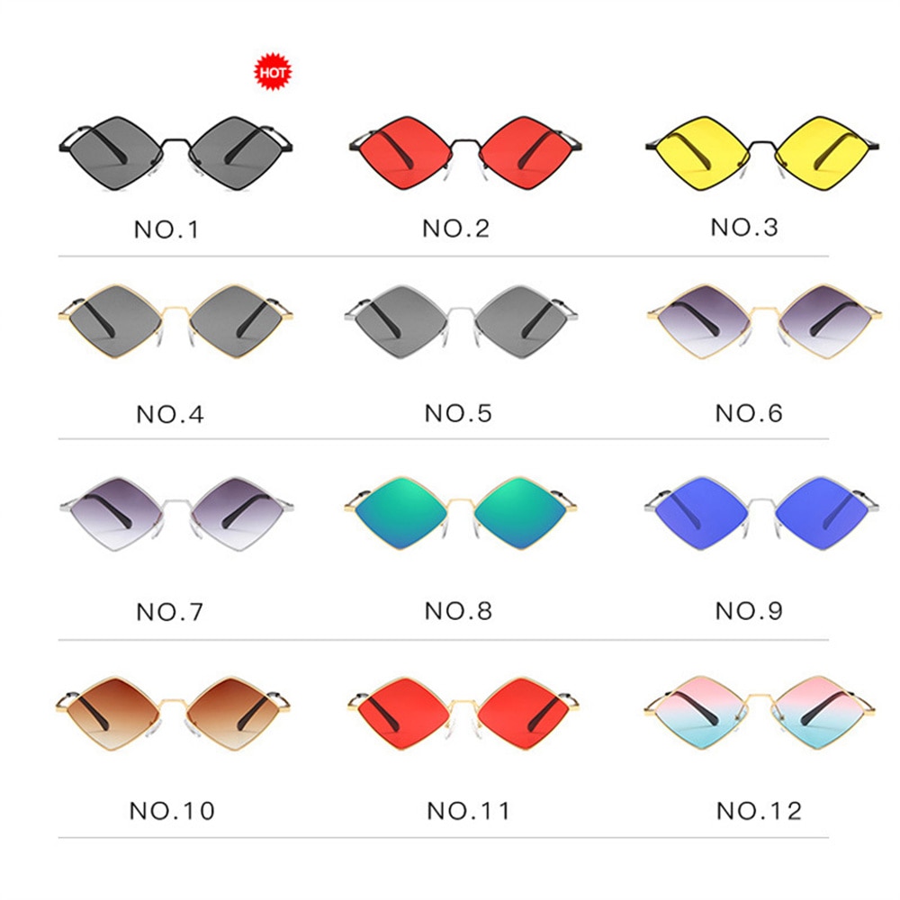 Солнцезащитные очки в ретро-стиле унисекс, Модные металлические асимметричные, в форме алмаза, с цветными линзами