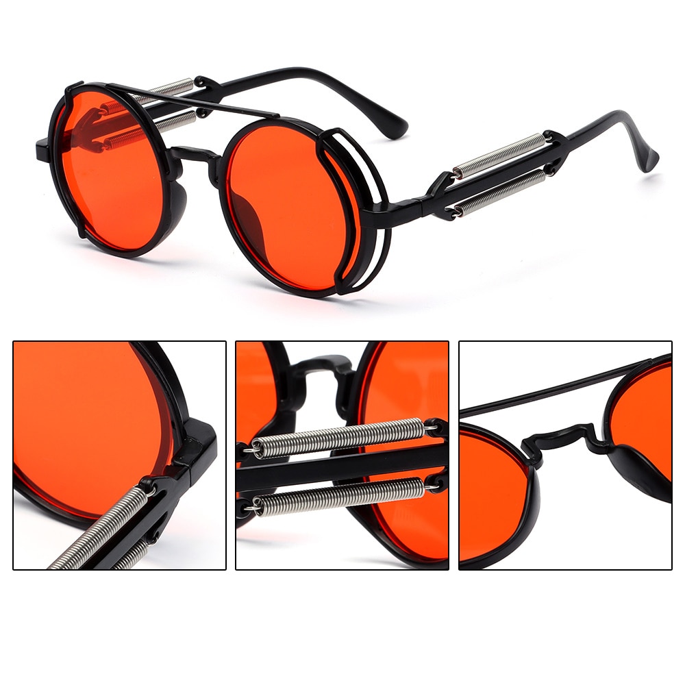 Солнцезащитные очки в стиле панк, стимпанк, очки с двойной пружиной, модные трендовые круглые солнцезащитные очки, мужские брендовые Дизайнерские товары в готическом стиле