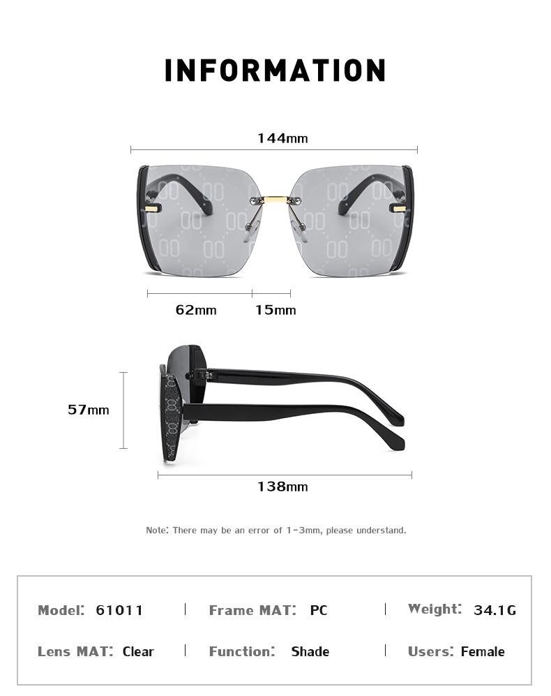 Солнцезащитные очки женские УФ модные большие квадратные солнцезащитные очки без оправы женские европейские и американские трендовые солнцезащитные очки