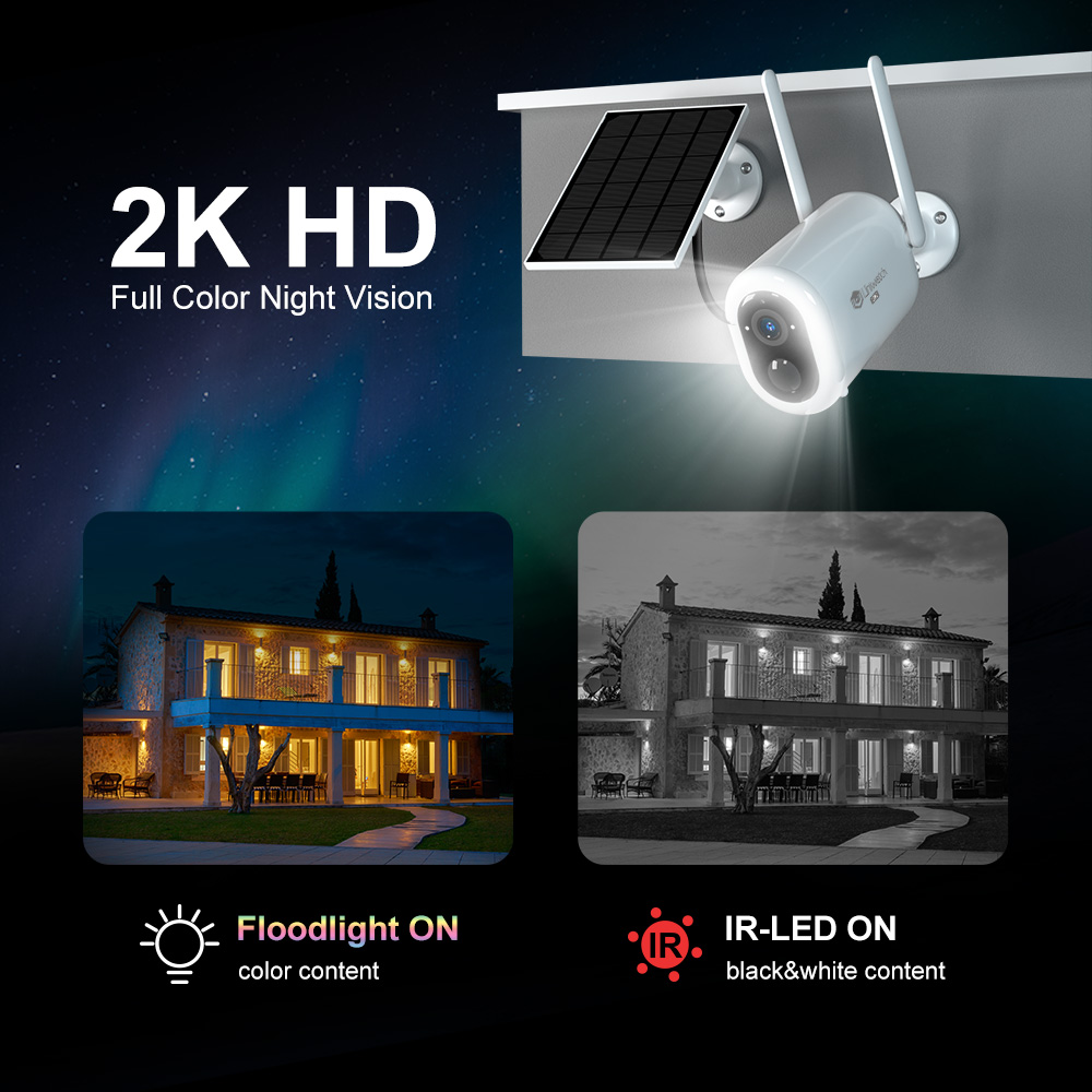 Камера на солнечной батарее с разрешением 2304x1296 снимает почти в 2 раза более четкое и резкое видео, чем 1080p.