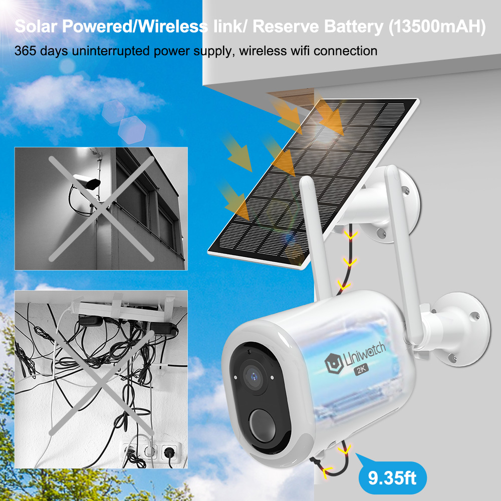 Uniwatch Открытый солнечной батареи безопасности Прожектор камеры, 2,4G WiFi 2K Наружная камера Беспроводная для домашней безопасности, с 800 люмен светодиодной подсветкой, PIR обнаружения движения, сирена, двустороннее аудио, Цвет ночного видения, IP66,WiFi наружная камера, IP камера наружная, WiFi камера, IP камера WIFI, WiFi IP камера, WiFi камера наружная, Камера CCTV Surveillancewireless Открытый IP-камера, камера наблюдения WIFI, wifi ip-камера, наружная батарея камеры, 3-мегапиксельная IP-камера, солнечные Наружные камеры наблюдения WIFI, камеры безопасности беспроводные наружные, камеры безопасности беспроводные наружные, камера наблюдения и видеть на мобильном телефоне, аккумуляторная батарея для наружной камеры Wi-Fi, солнечная батарея для наружной камеры Wi-Fi, наружные солнечные прожекторы камеры.
