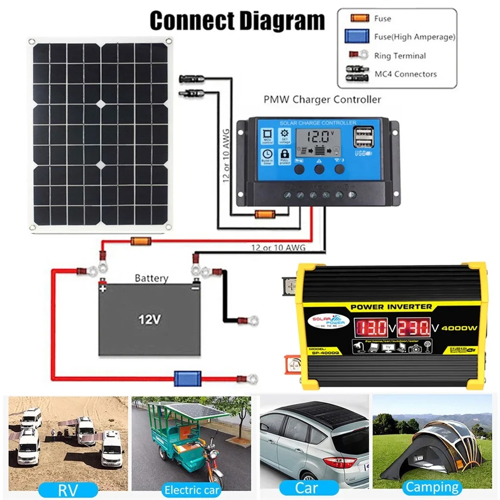 Солнечная панель 1000 Вт 12 В-11 0 В/100 в, солнечная панель 4000 Вт, модифицированный синусоидальный инвертор Вт, комплект для поколения энергии на открытом воздухе