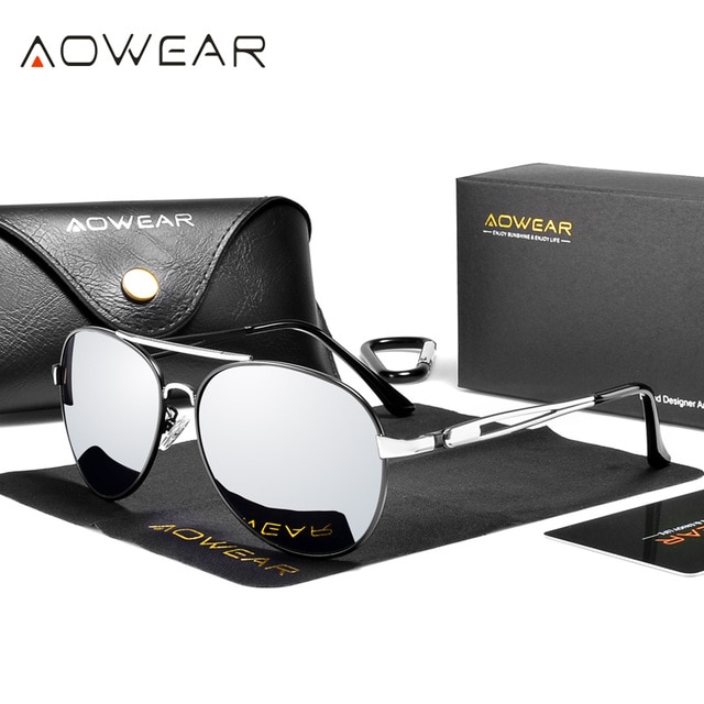 Солнечные очки AOWEAR в классическом стиле женские, зеркальные поляризационные авиаторы с защитой от ультрафиолета, с защитой от ультрафиолета