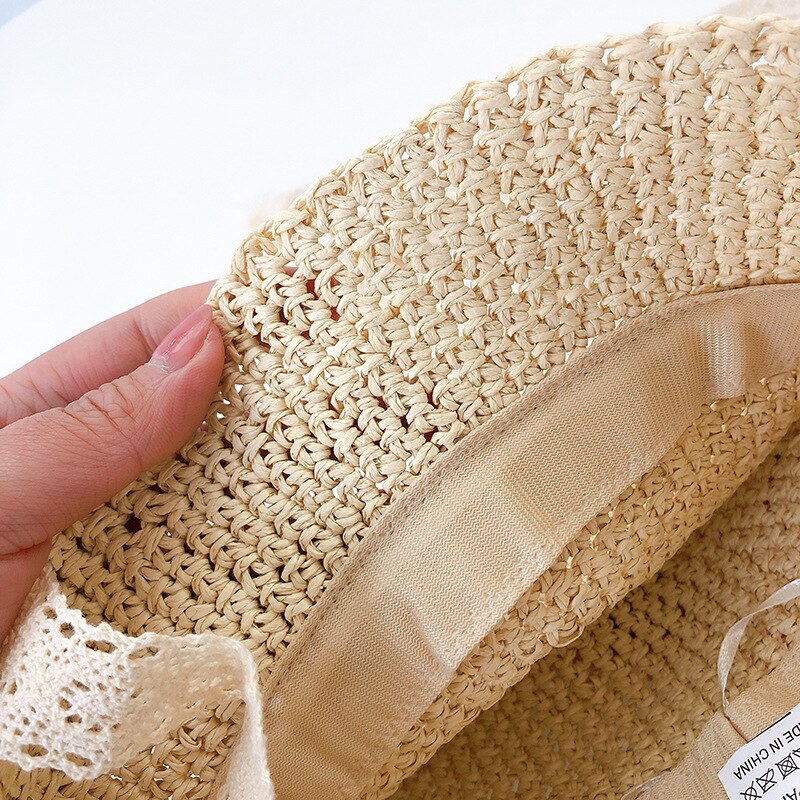 Соломенная шляпа для девочек, Пляжная Панама с кружевом и бантом, шляпа для защиты от солнца, для малышей, детей ясельного возраста, лето
