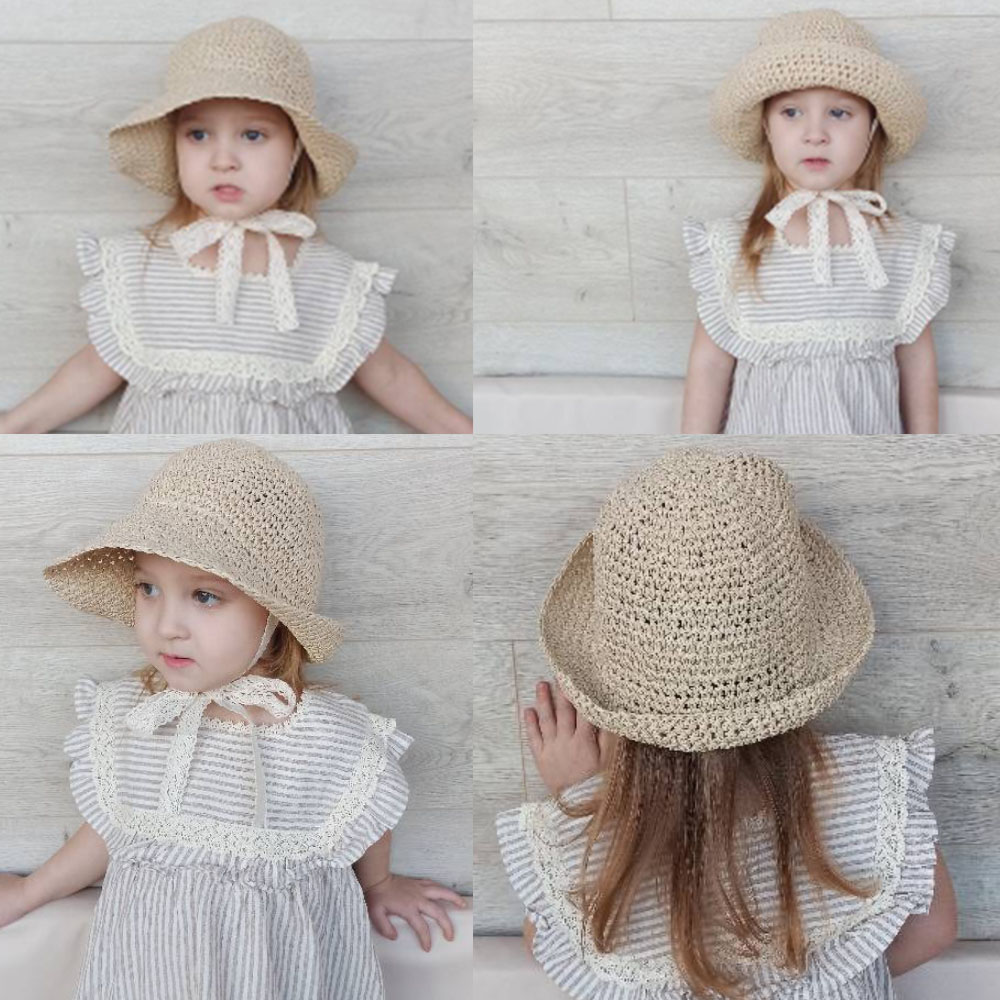 1. Товары: Летняя Пляжная соломенная шляпа рыбака для девочек, детская кружевная шляпа-Панама с бантом для малышей, Детская шляпа с солнцезащитным крема