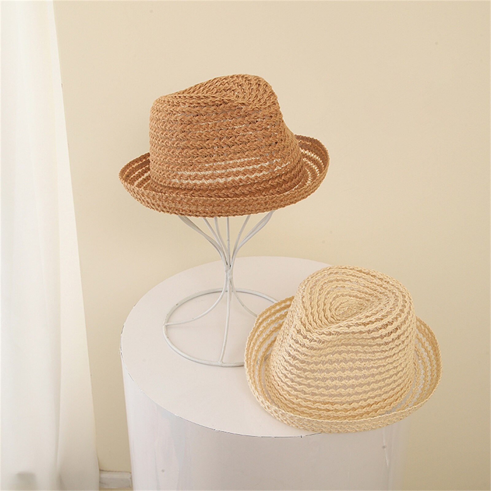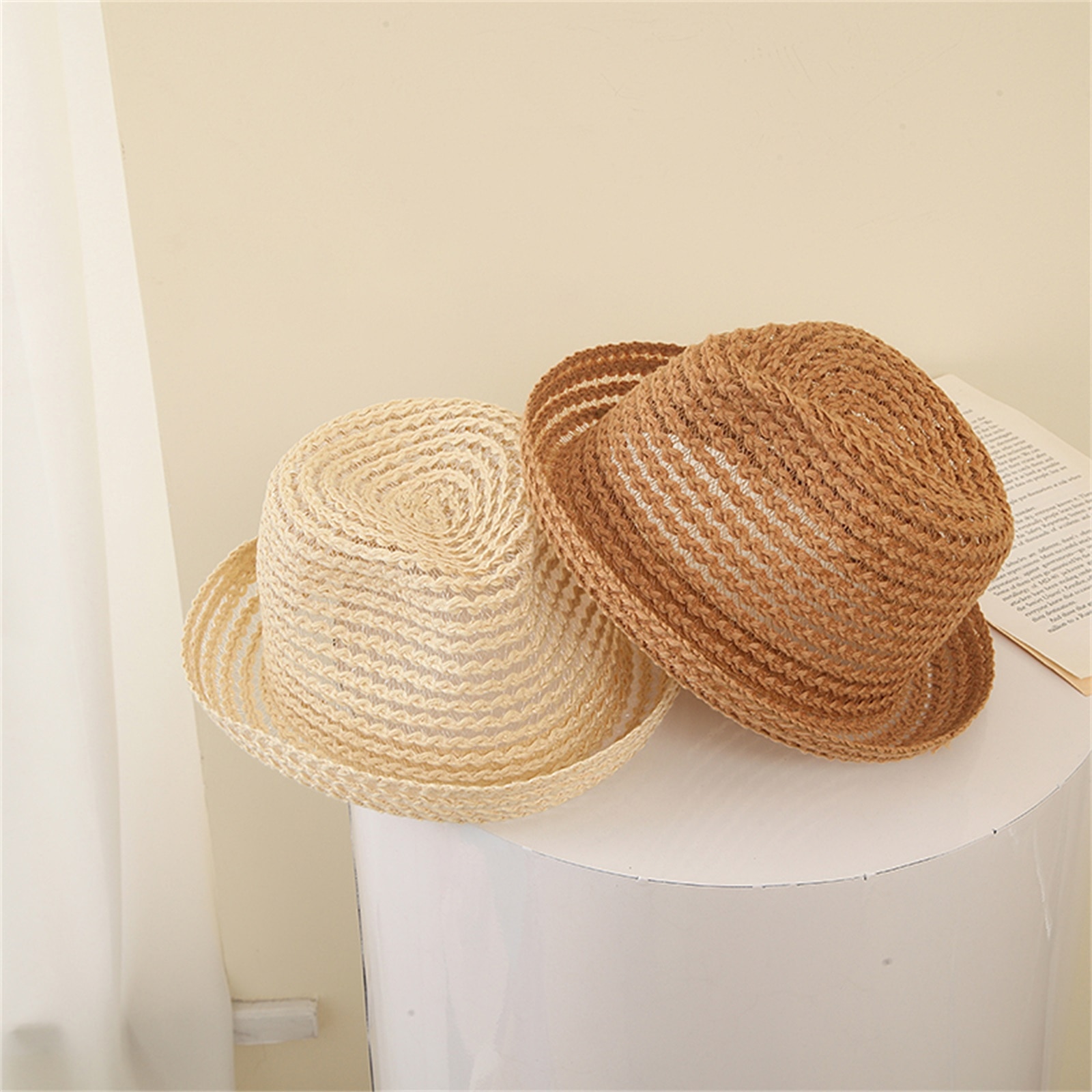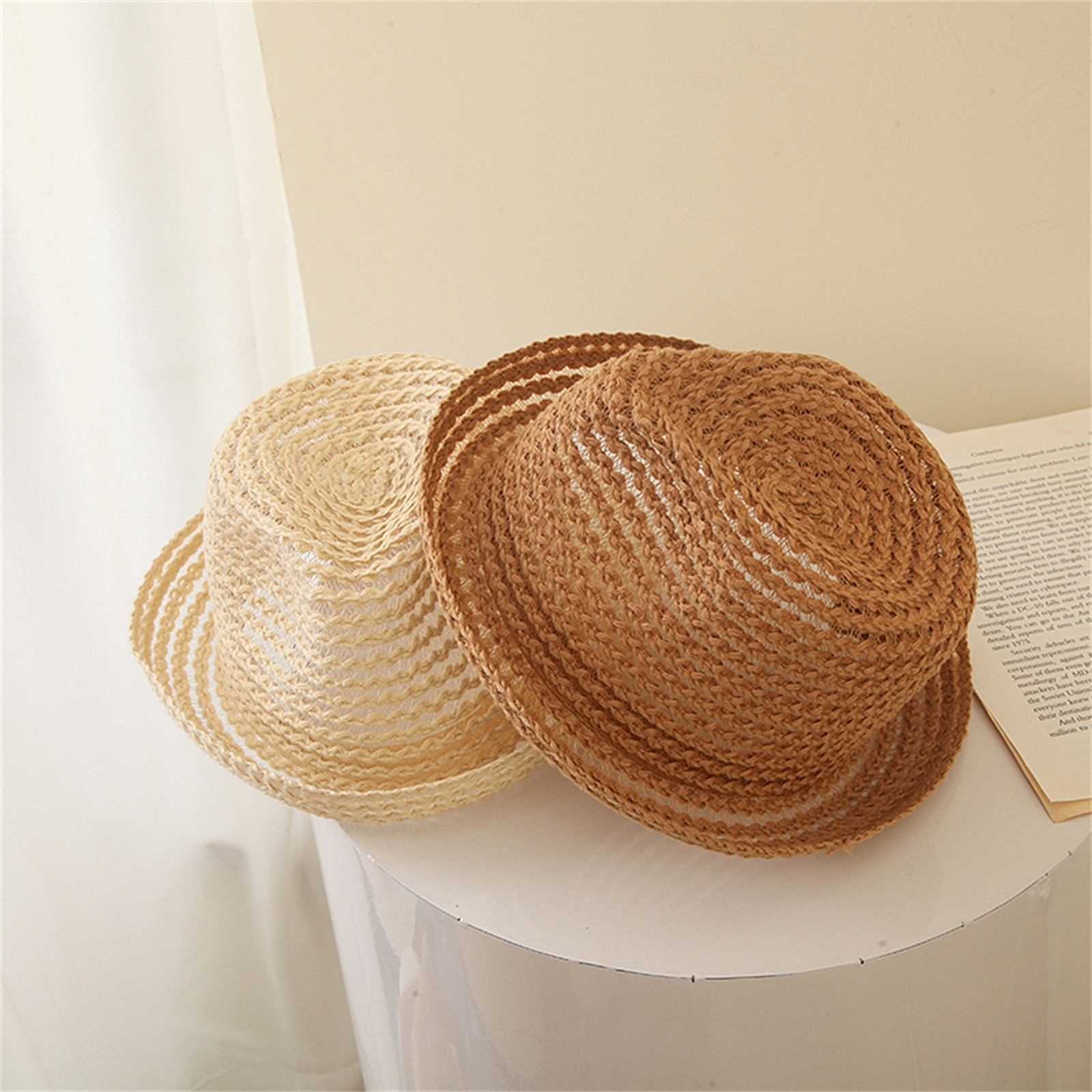 Соломенная шляпа для младенцев, однотонная Складная дышащая шапка от солнца, для пляжа, для детей ясельного возраста, мальчиков и девочек