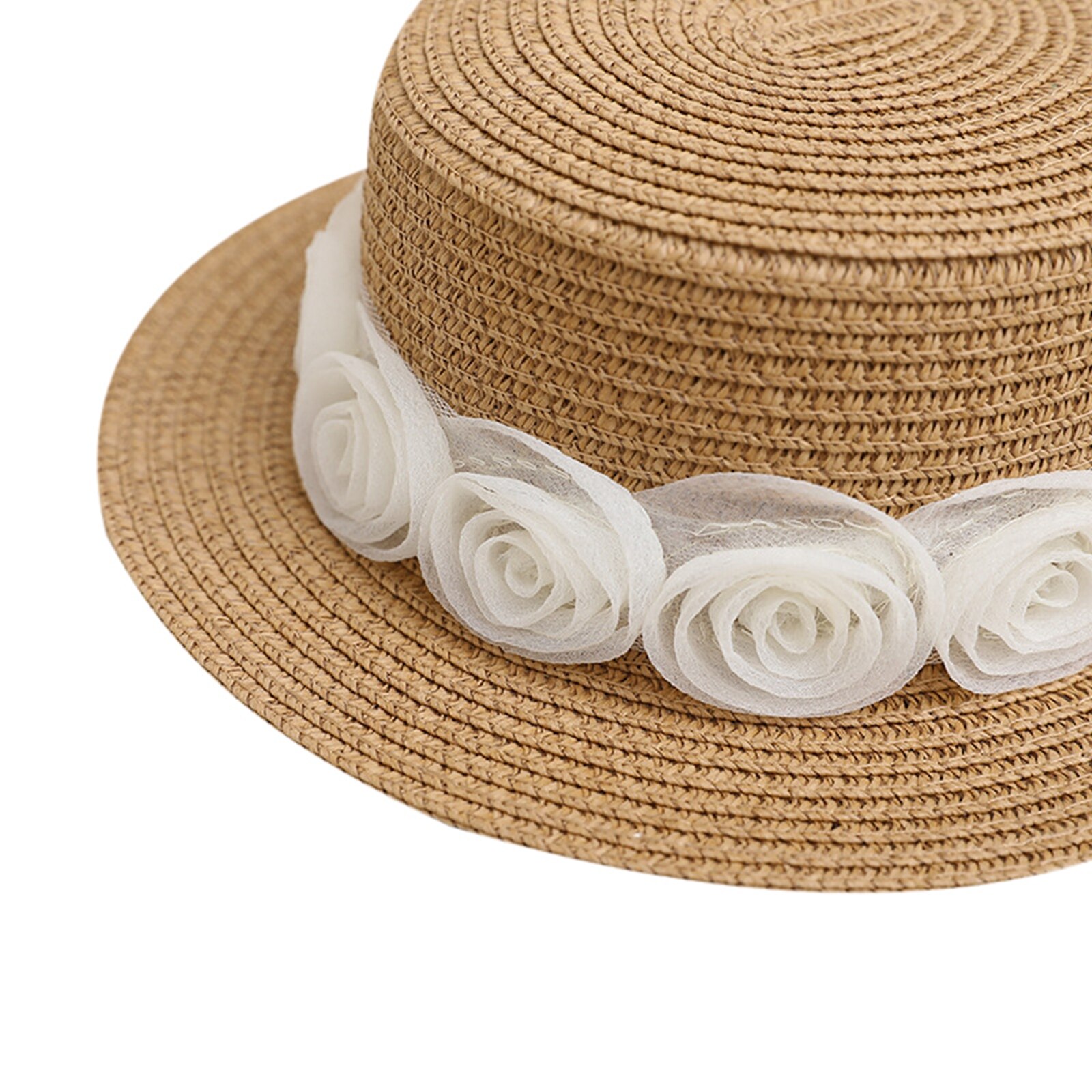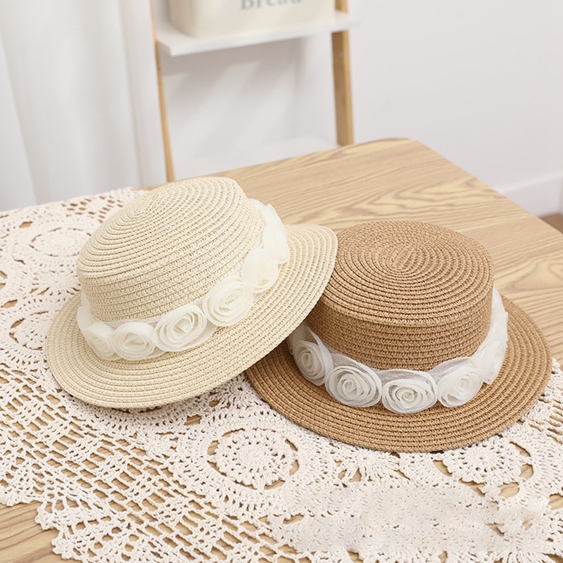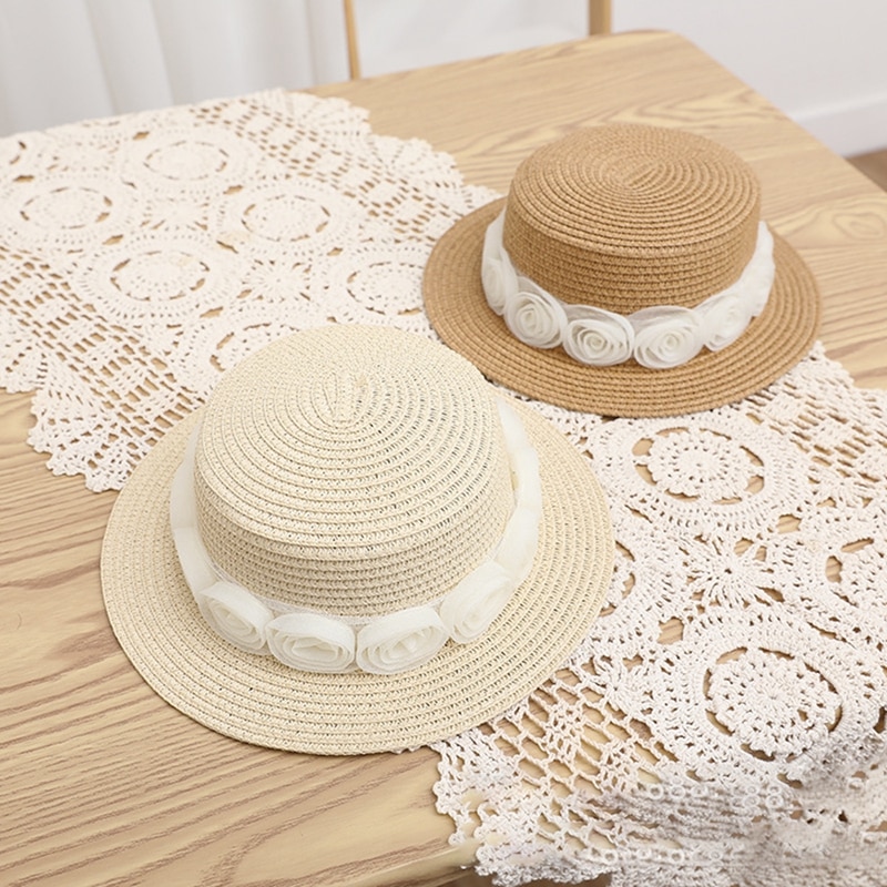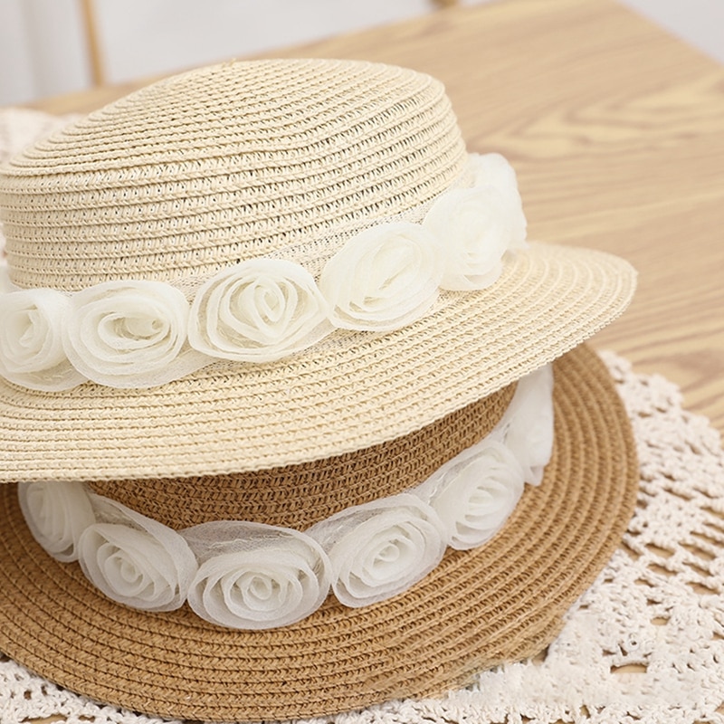 Описание: Kid Girl Солнцезащитная шляпа, Широкие поля Цветочные соломы Плетеный солнцезащитный козырек Открытый Cap Пляжная шляпа ведро