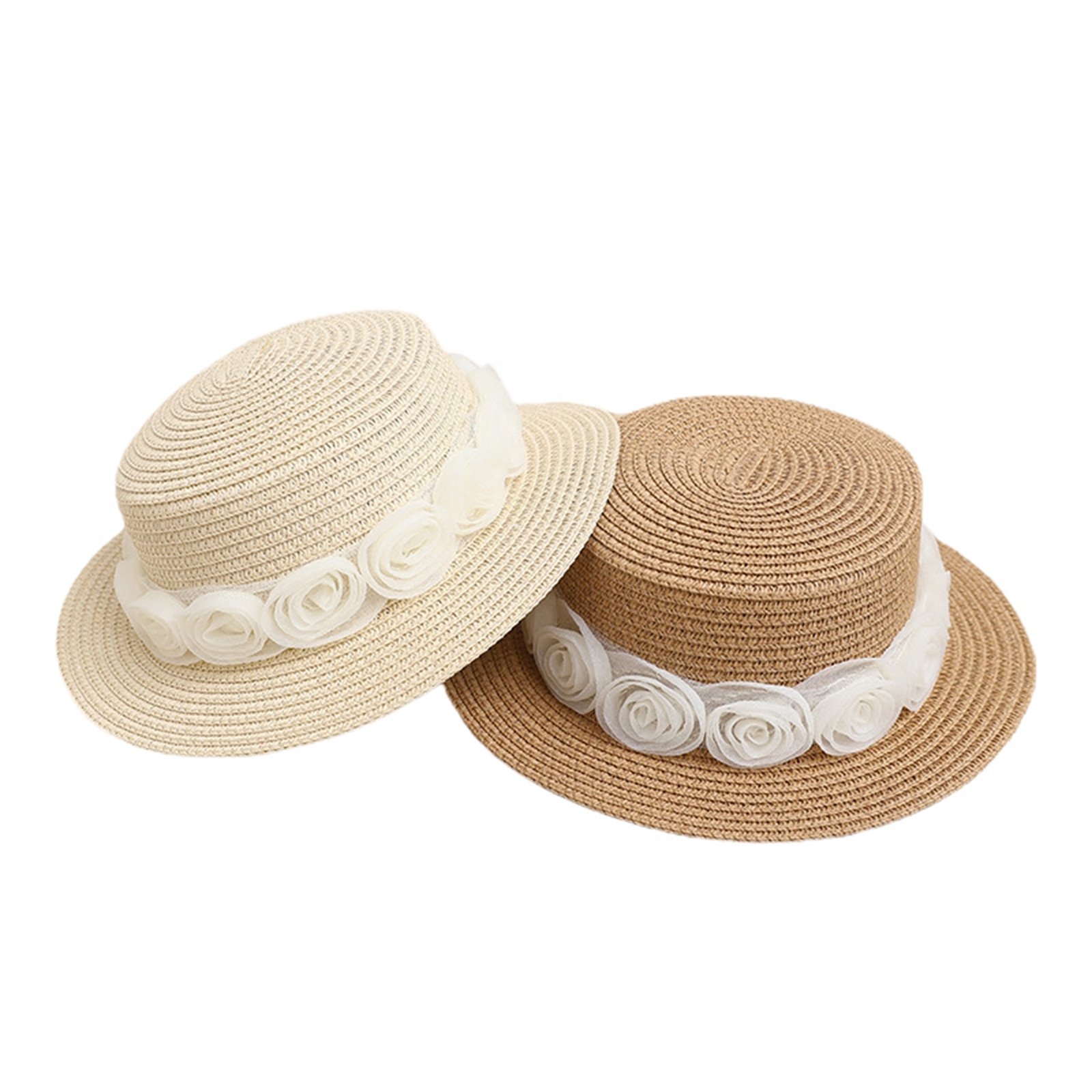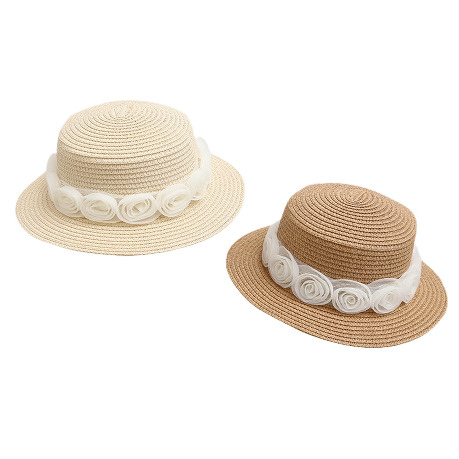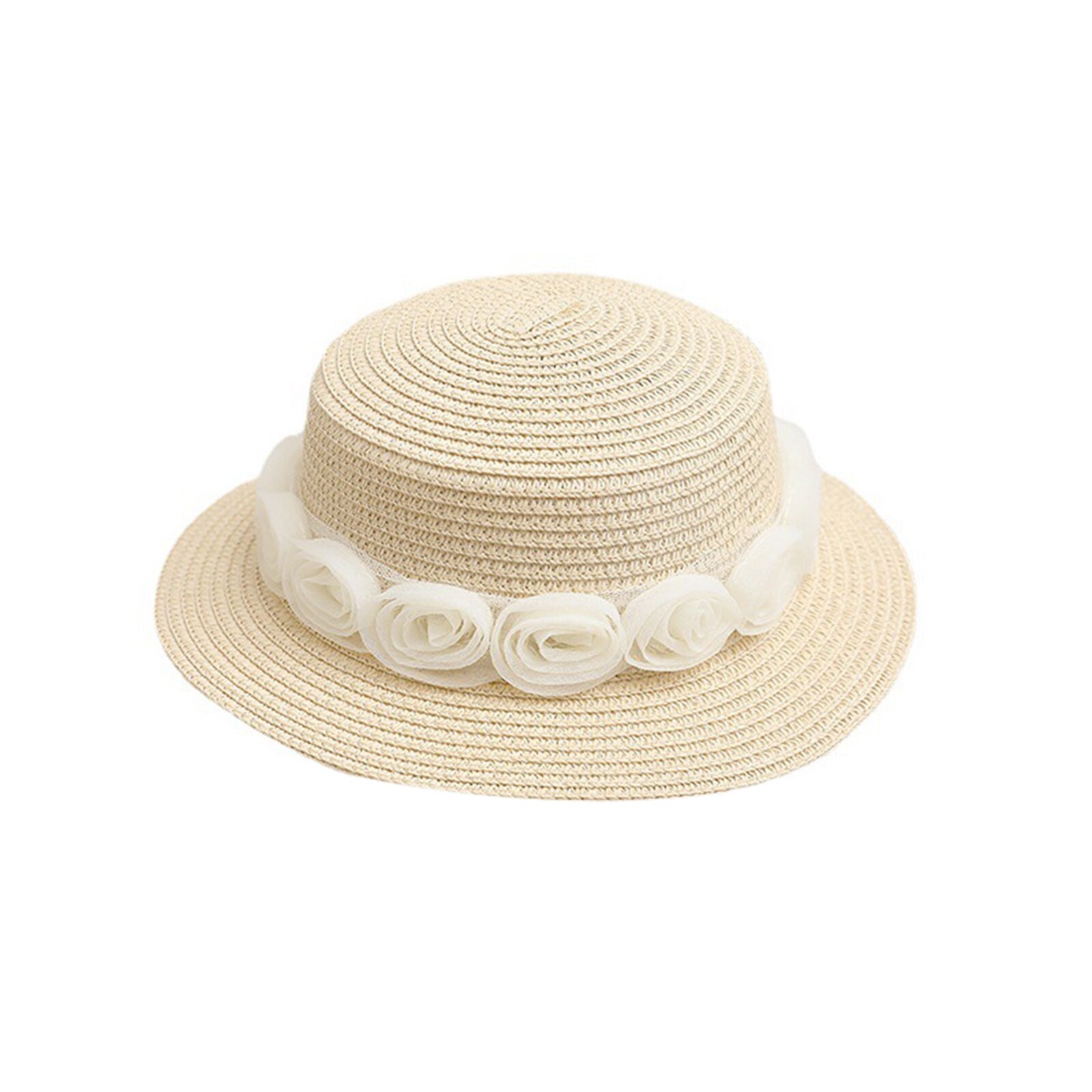Описание: Kid Girl Солнцезащитная шляпа, Широкие поля Цветочные соломы Плетеный солнцезащитный козырек Открытый Cap Пляжная шляпа ведро