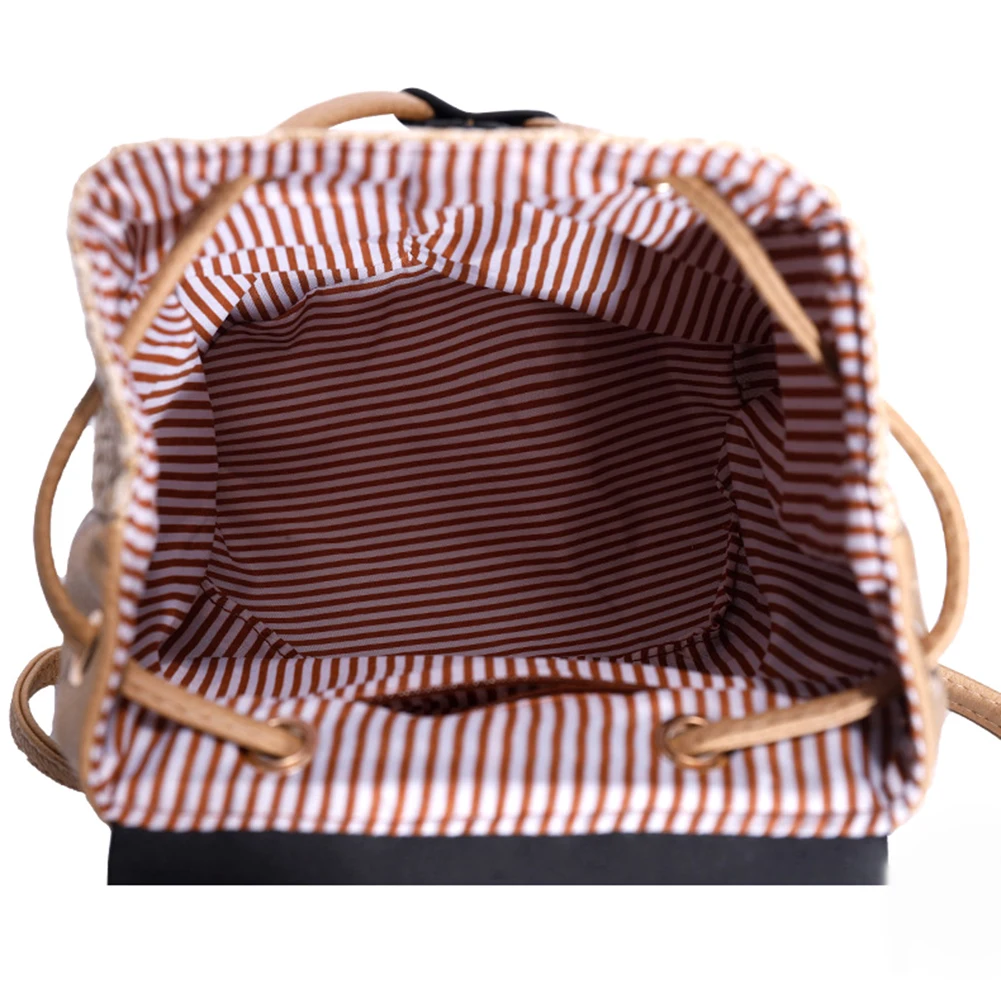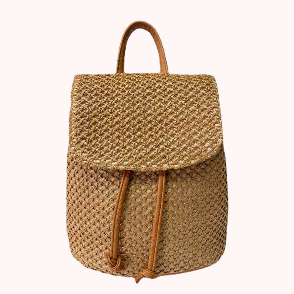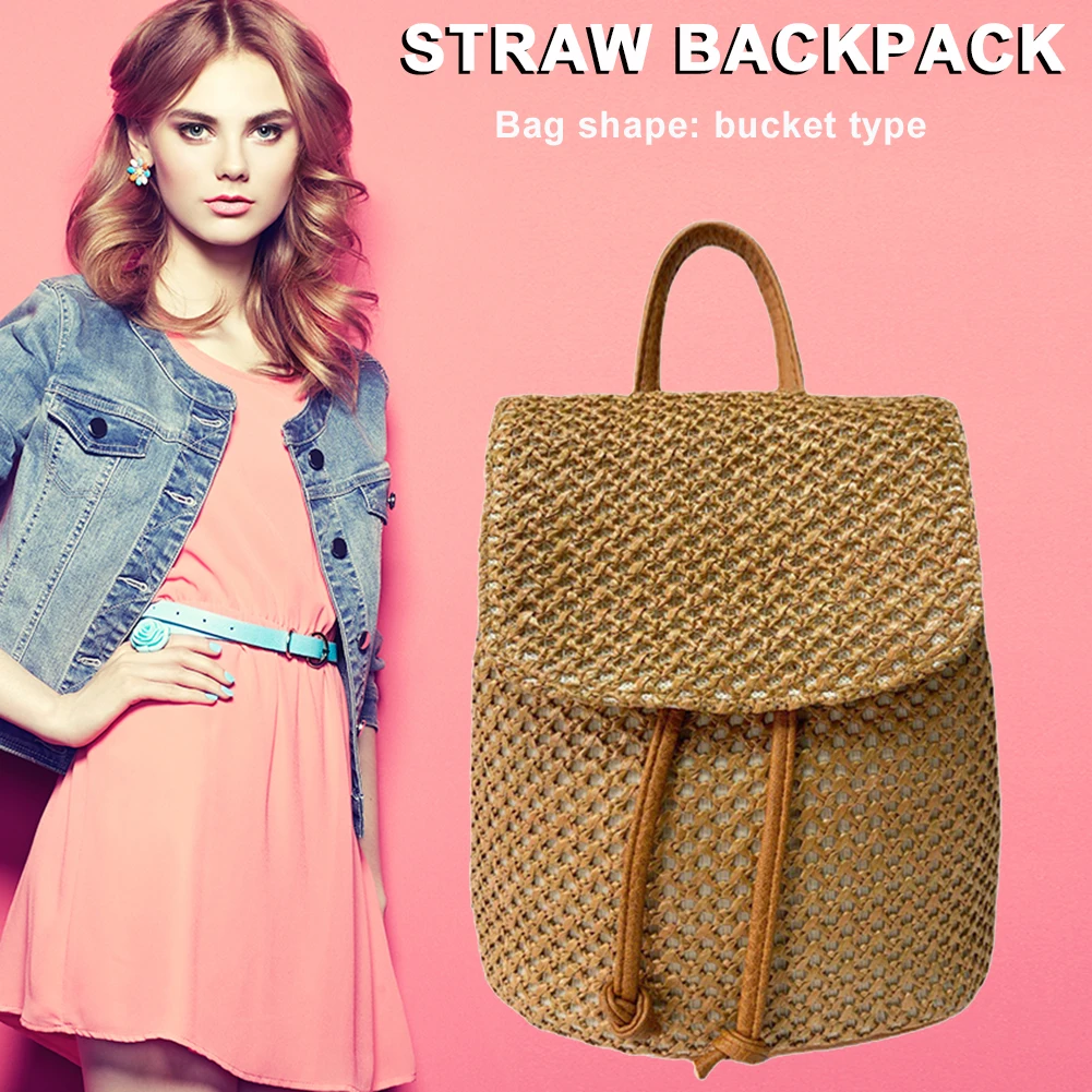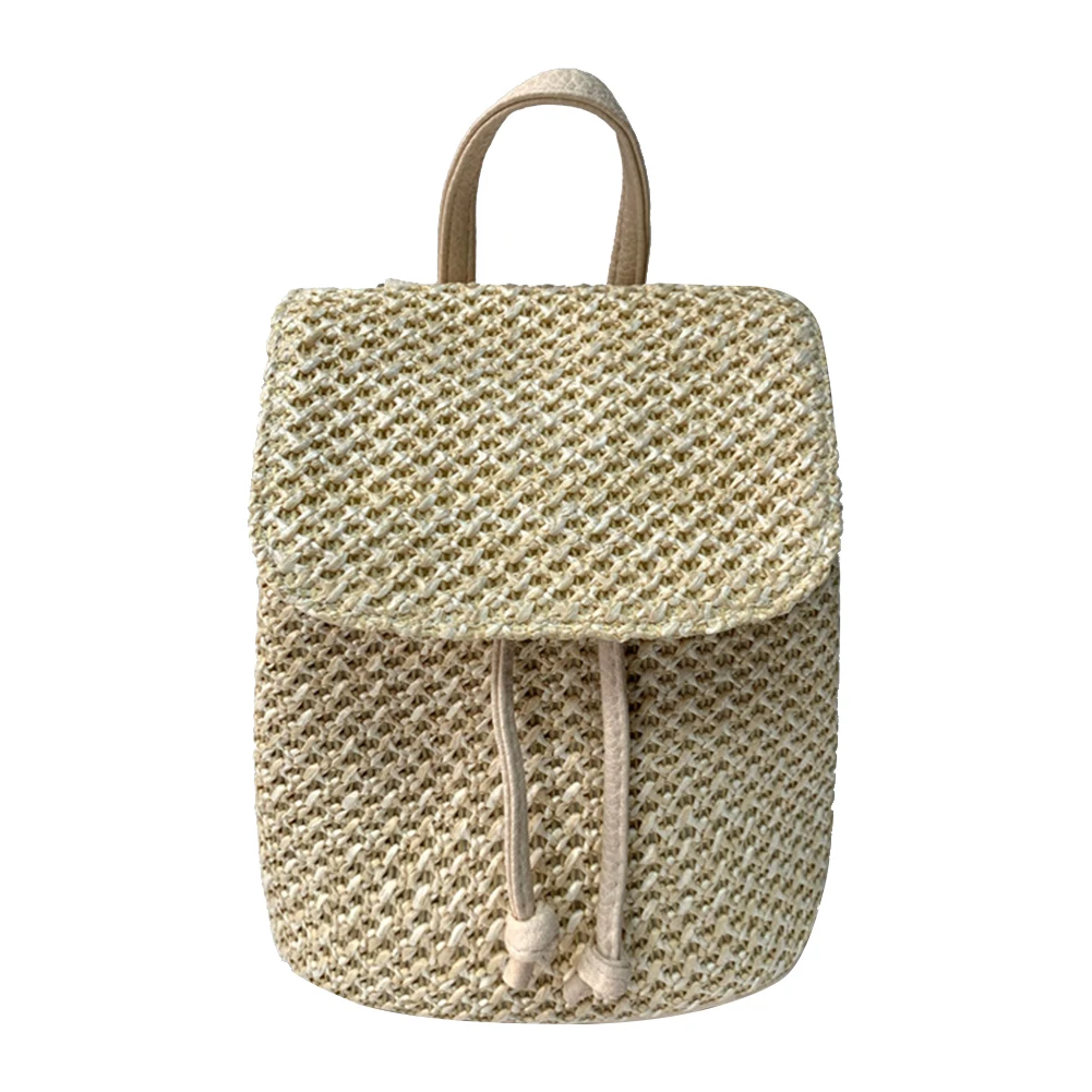 Women Straw Beach Shoulder Backpack Summer Beach Handmade Woven Leather Purse School Bag Daypack