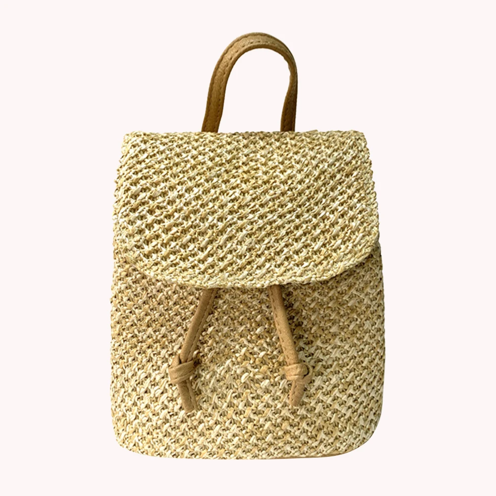 Соломенный рюкзак для женщин, повседневные плетеные кожаные пляжные дорожные школьные ранцы ручной работы, Женский Повседневный ранец на лето