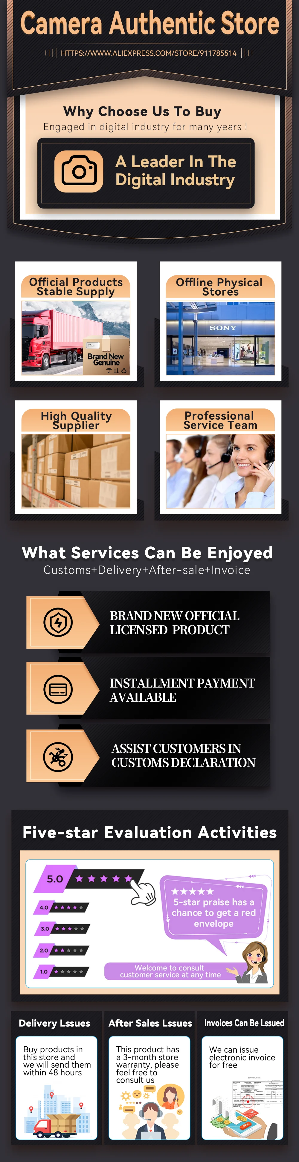 3. Поскольку камеры, Объективы и другие товары стоят дорого, наш магазин в настоящее время не принимает возврат без причины. Пожалуйста, включите машину после того, как вы полностью разберетесь в продуктах и подтвердите, что оборудование находится в хорошем состоянии.