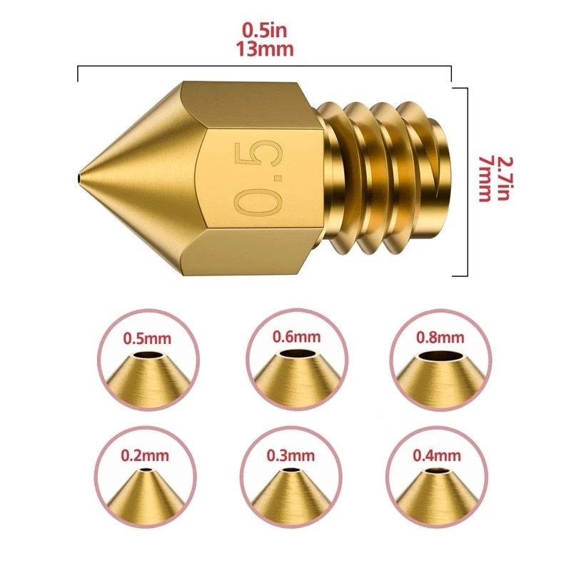 5/10PCS 3D Printer Nozzles 0.2mm 0.3mm 0.4mm 0.5mm 0.6mm 0.8mm