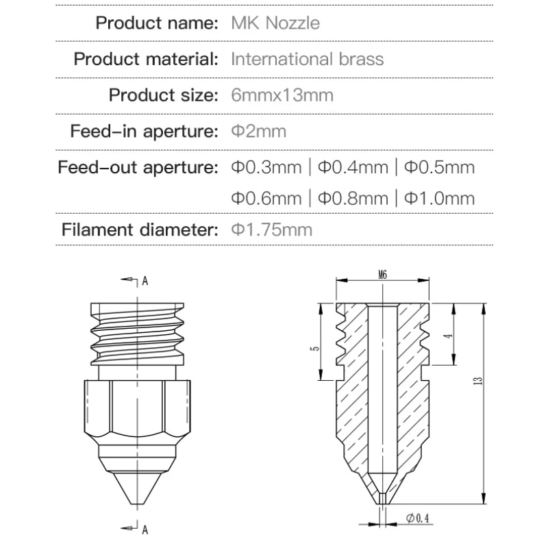 Сопло для 3D-принтера CREALITY 0,2/0,3/0,4/0,5/0,6/0,8 мм