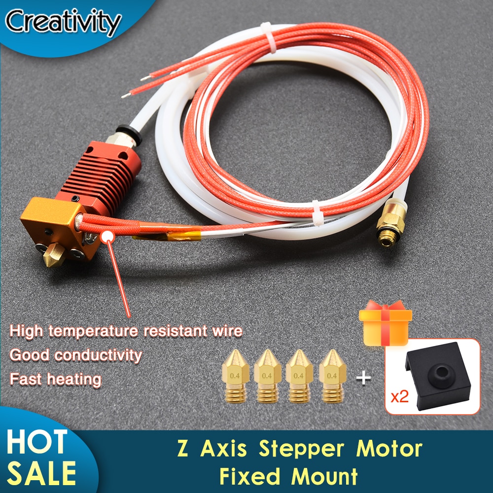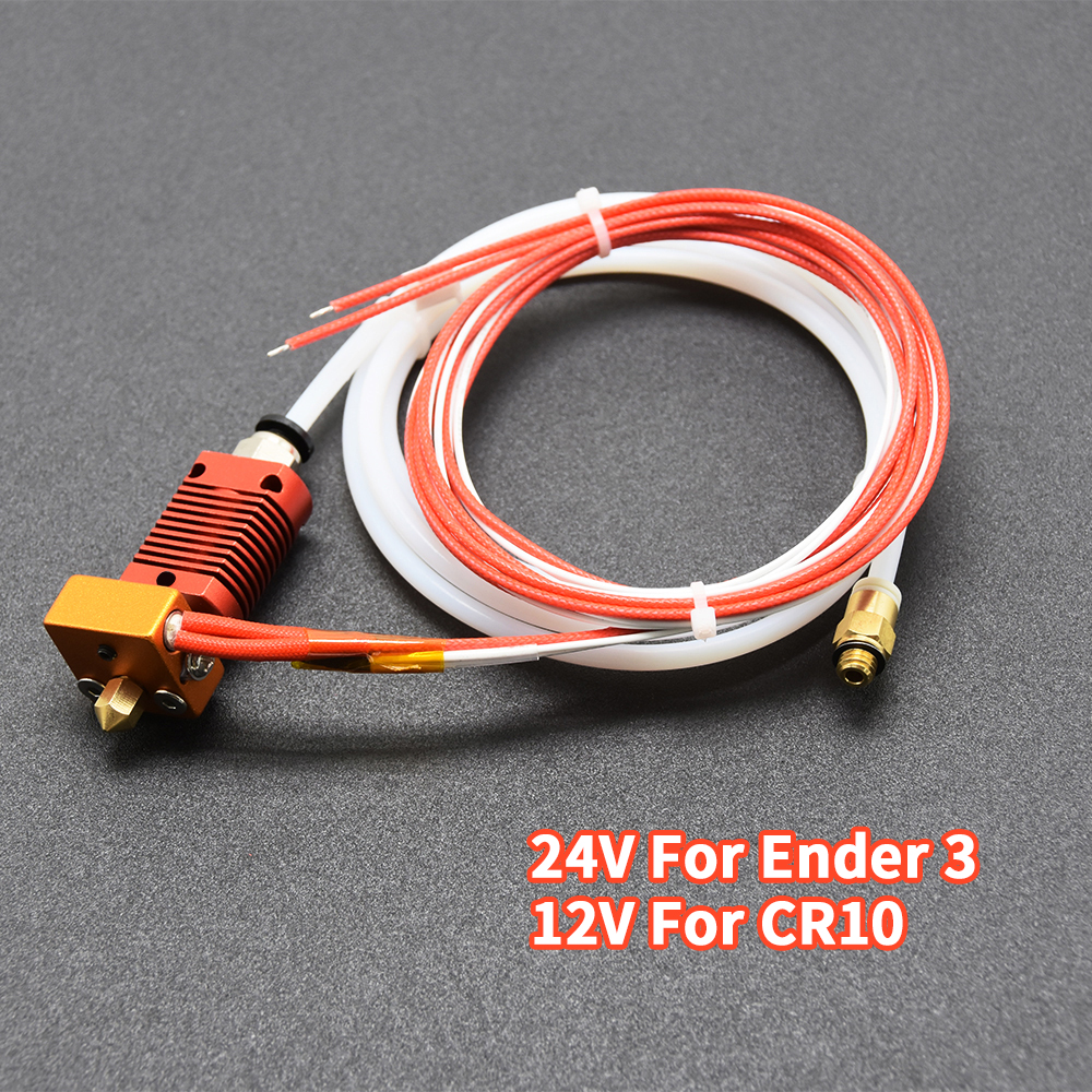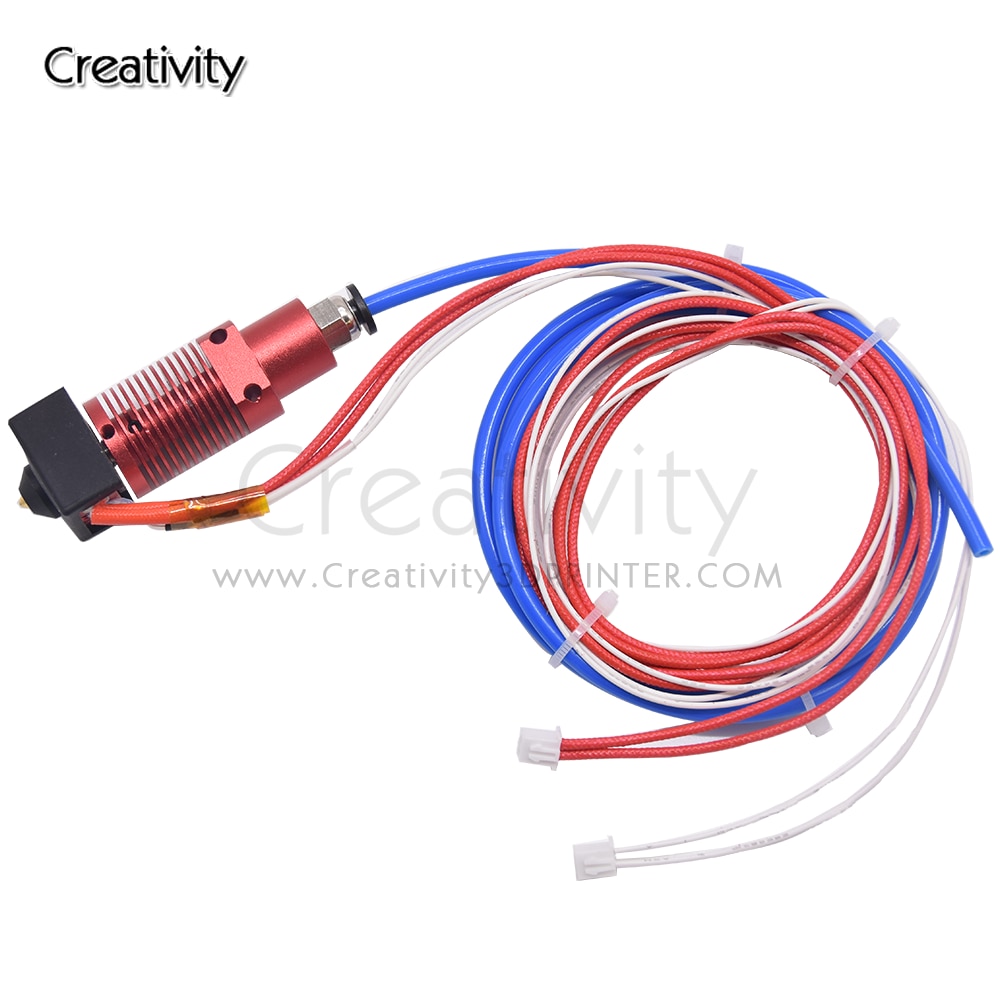 4. Комплект горячего конца экструдера MK8, белый провод-Термистор температуры, красный провод-нагревательная трубка.