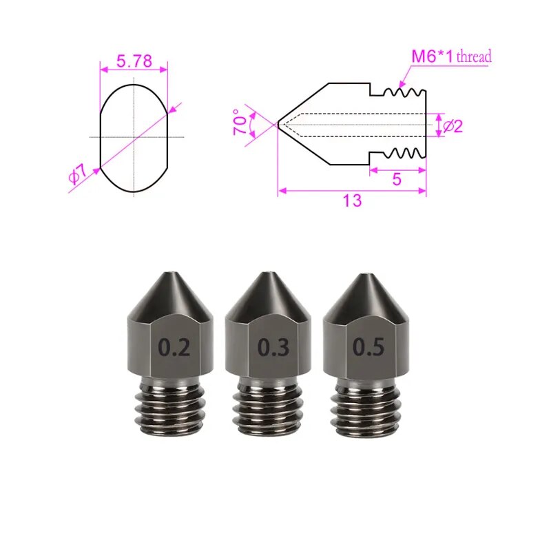 2 шт. Закаленная сталь MK8 сопло M6 резьба детали для 3D-принтера MK8 сопла для 1,75 мм накаливания Hotend сопло для CR10 Ender 3