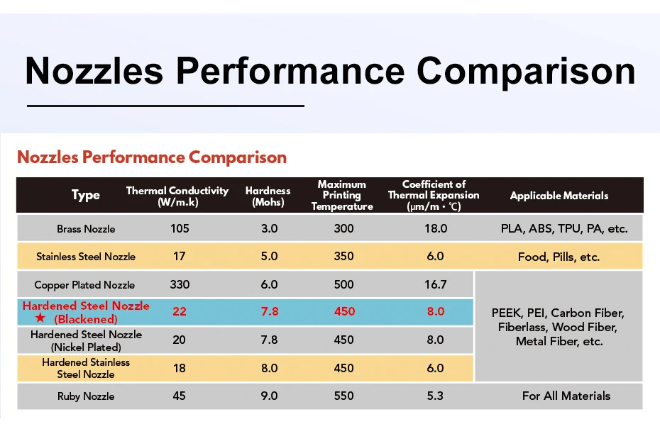 Немного больше платить за закаленное, износостойкое сопло имеет как практический, так и экономический смысл. К тому времени, как Вы напечатаете одну катушку абразивной нити, вы сэкономите деньги. Это также экономит много времени, так как вы не будете постоянно заменять Изношенные форсунки. И вы будете готовы к будущим материалам; мы думаем, что эти форсунки должны быть в состоянии справиться практически со всем, о чем наши производители материалов подумают дальше.