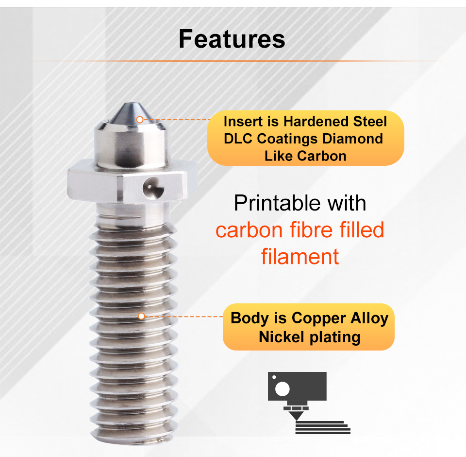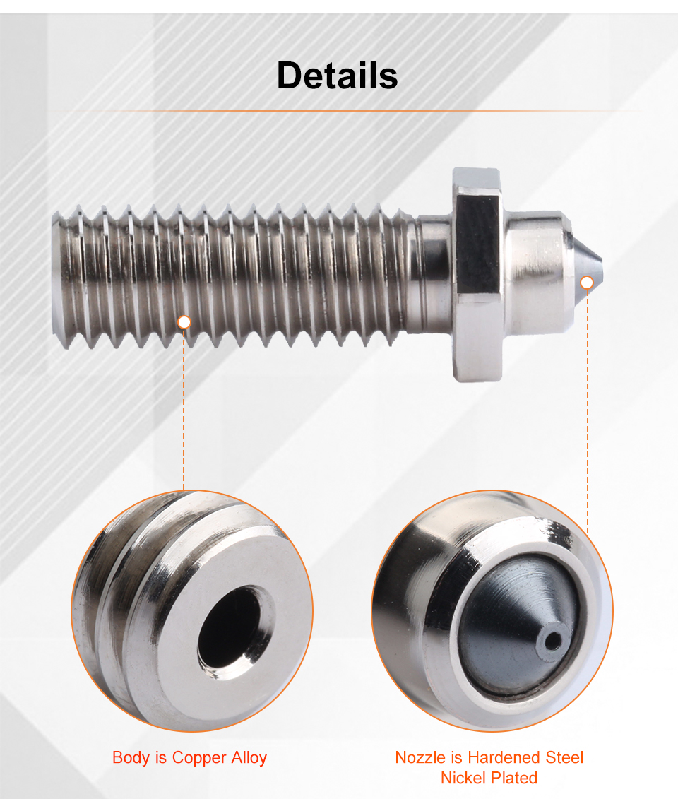 Медь имеет более чем в 3 раза теплопроводность латуни.Более высокая теплопроводность.Он идеально подходит для высокотемпературной печати, с которой не справляются другие сопла.