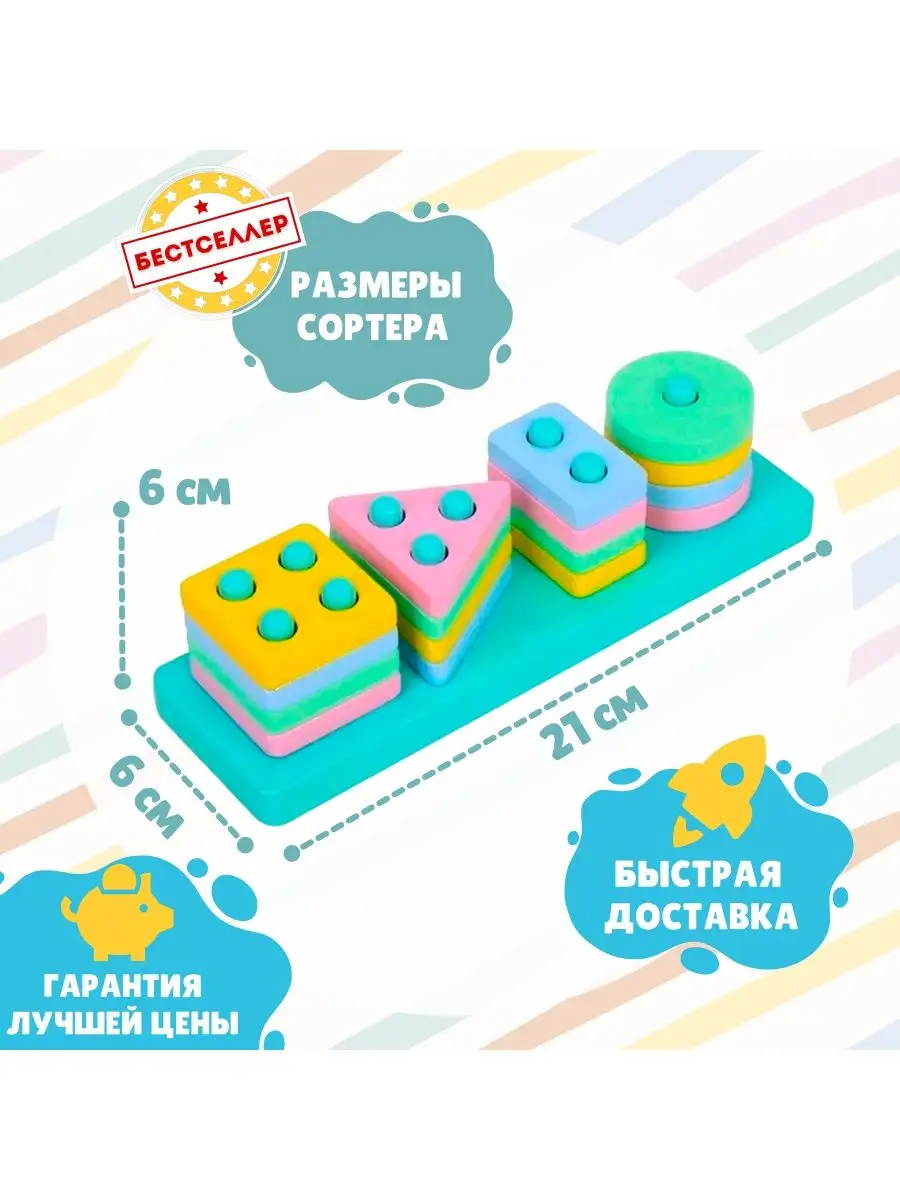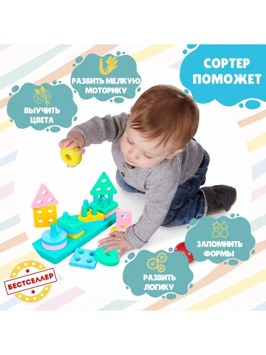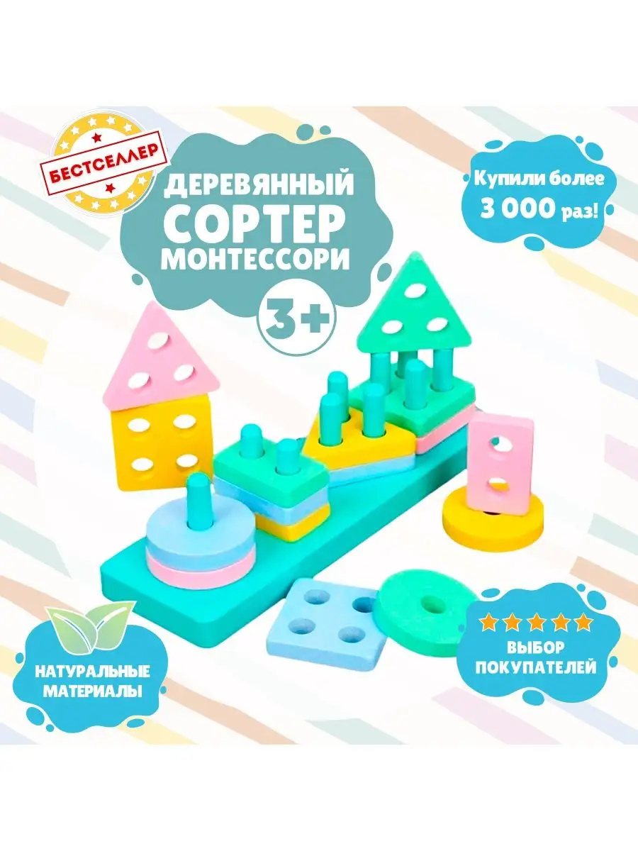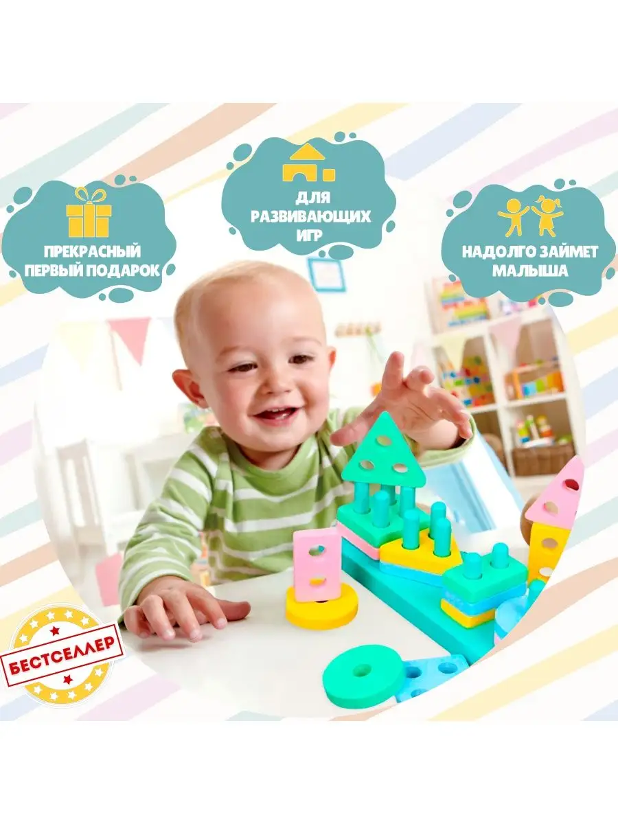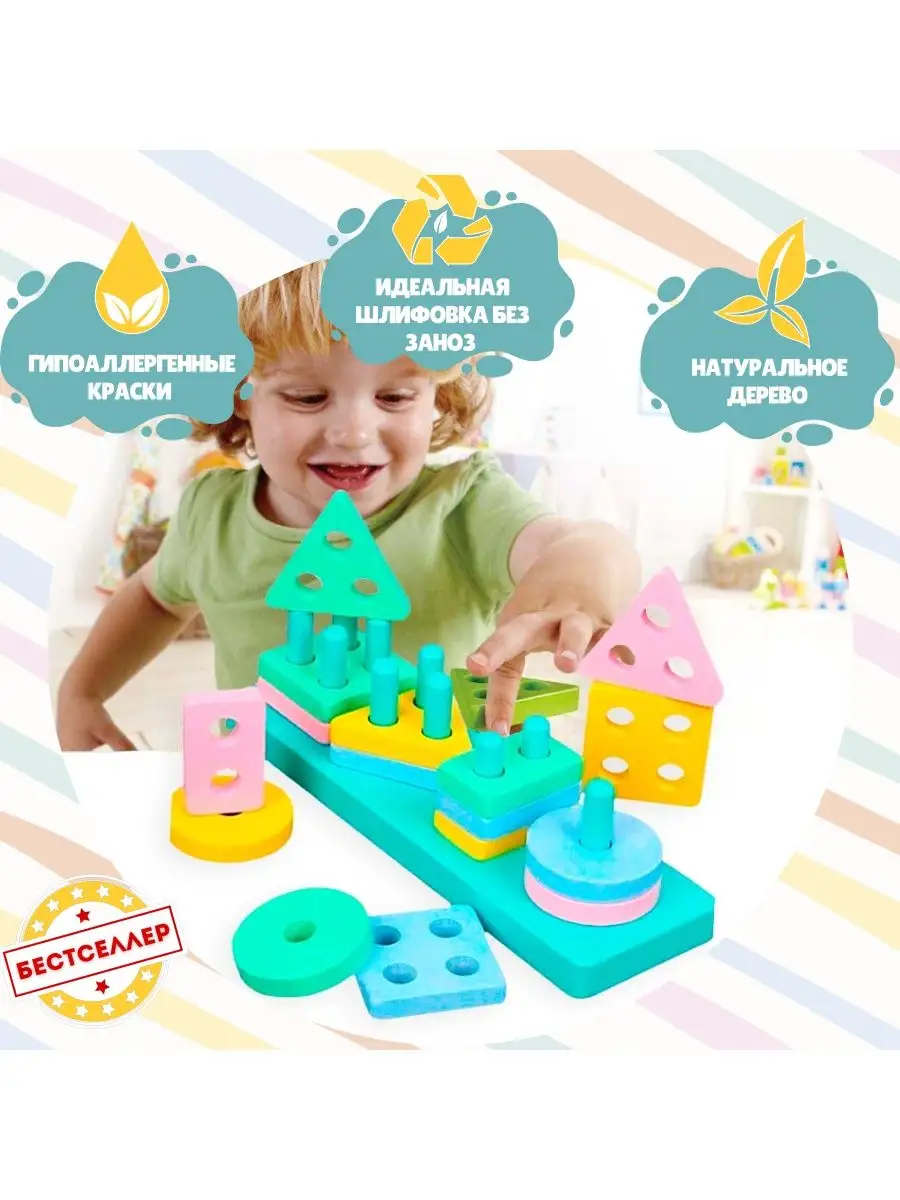 Сортер деревянный Монтессори 0+. Пирамидка развивающая.