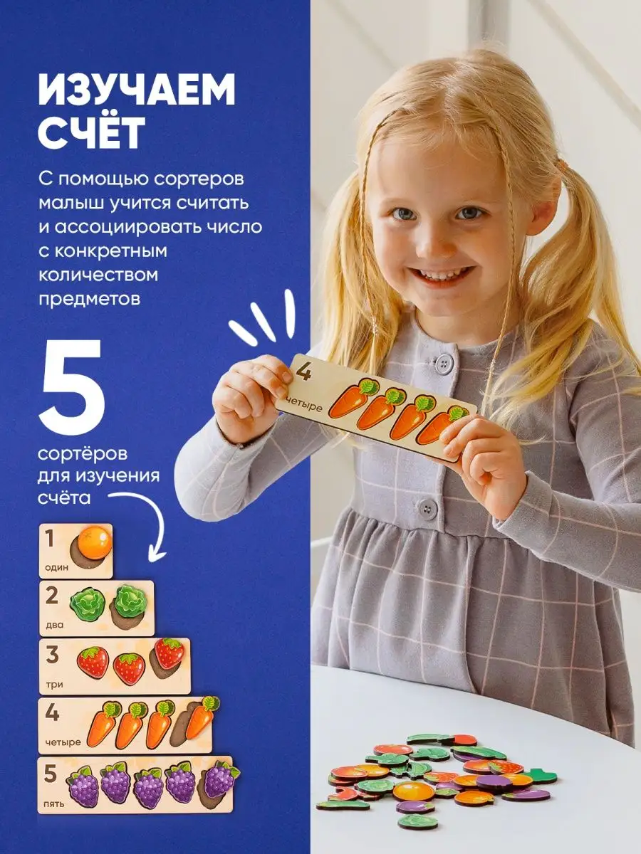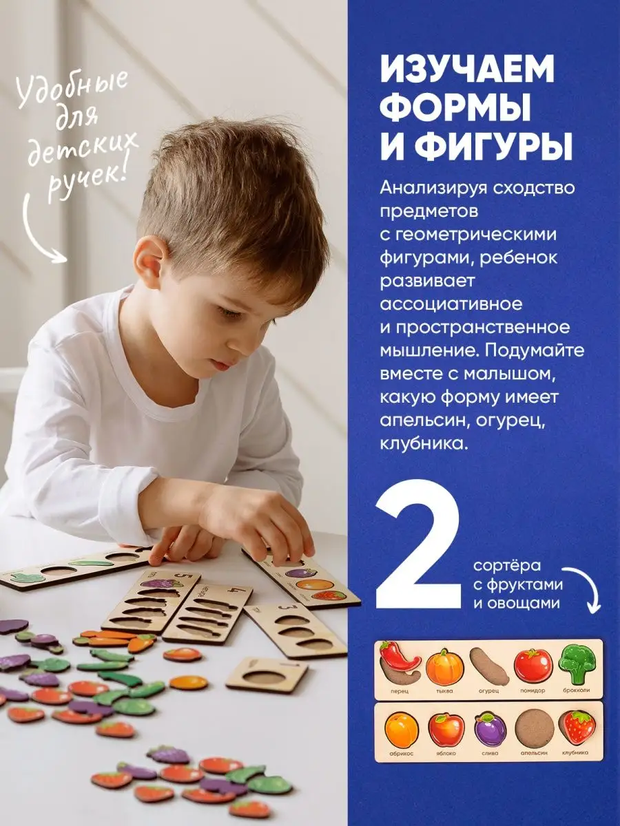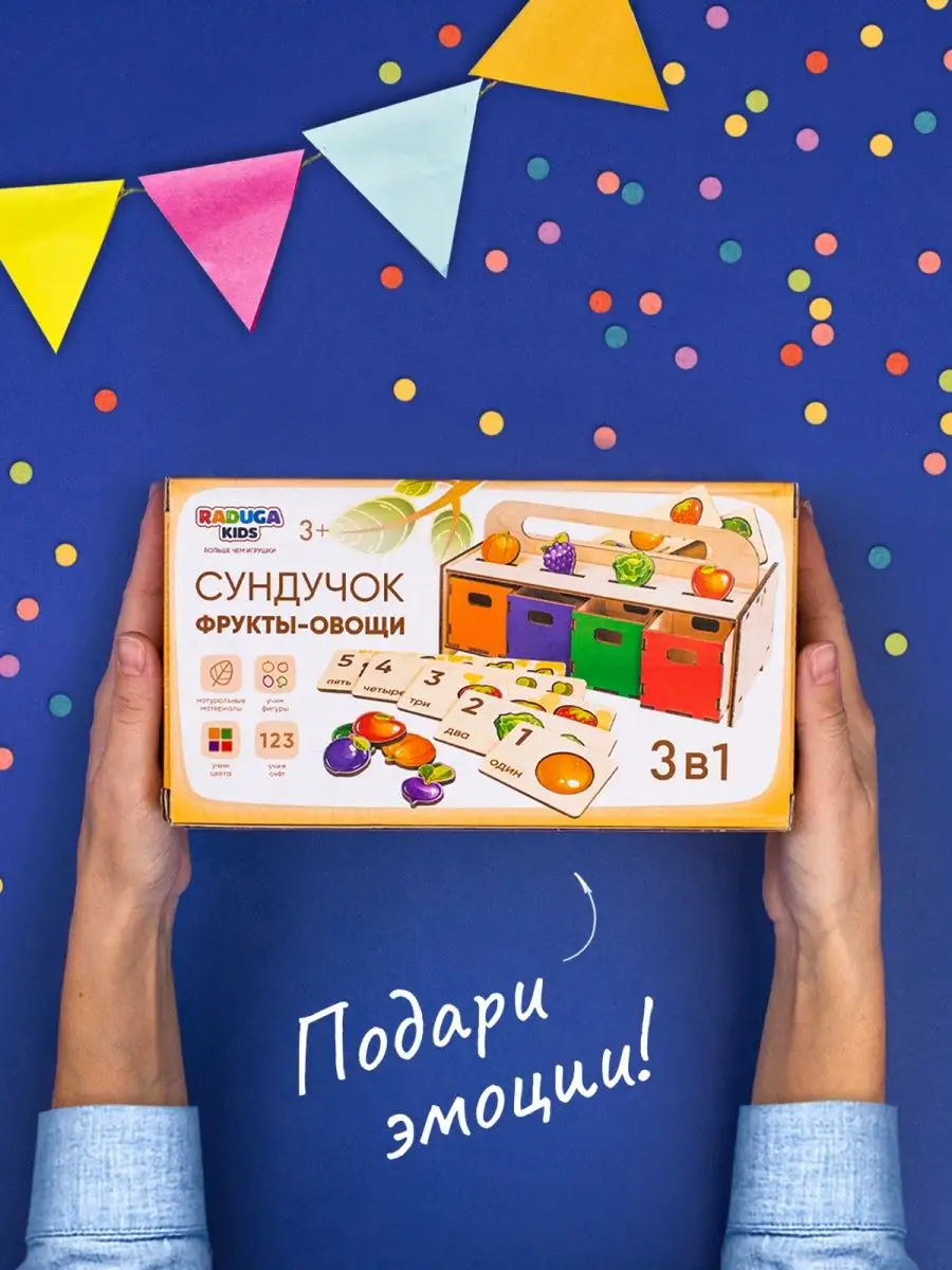 Комплектация коробка; 43 фишки; сортеры деревянные для малышей; фрукты овощи ягоды; волшебный сундучок