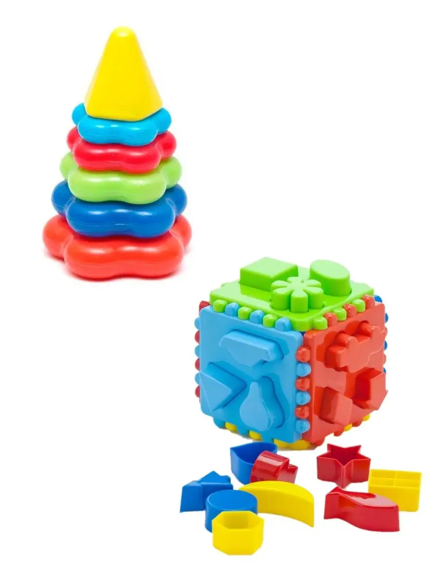 Сортер для малышей кубик большой + Пирамидка детская малая