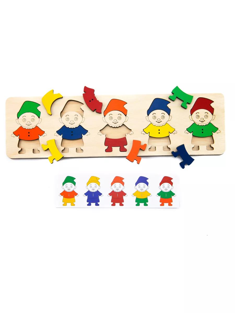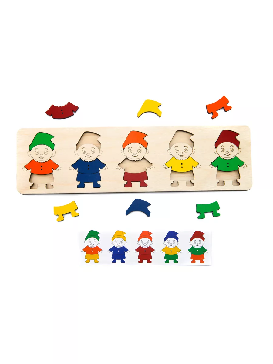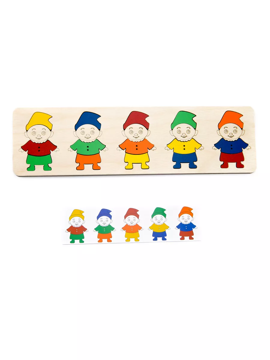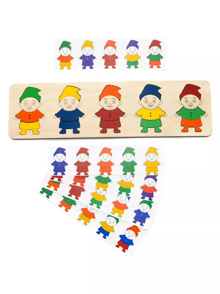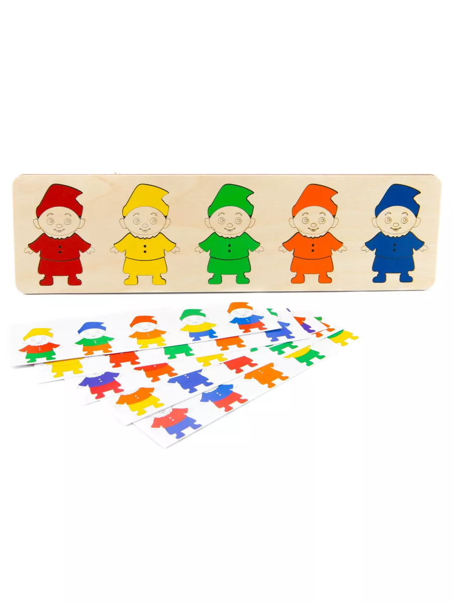 Комплектация Деревянный планшет с гномиками, двухсторонние карточки - 5 шт