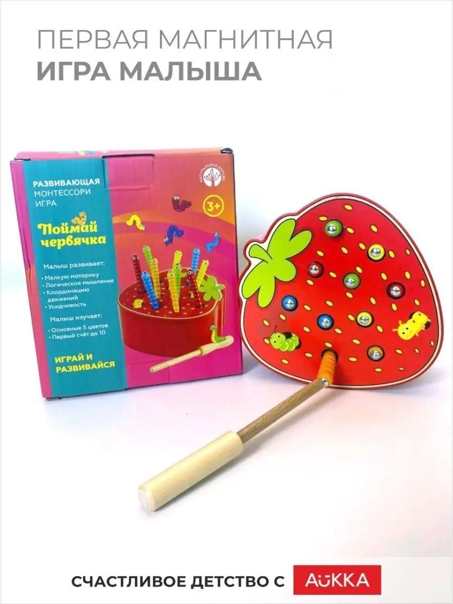 Комплектация червячки 10 шт; Деревянная основа - 1 шт; Магнитная удочка - 1 шт