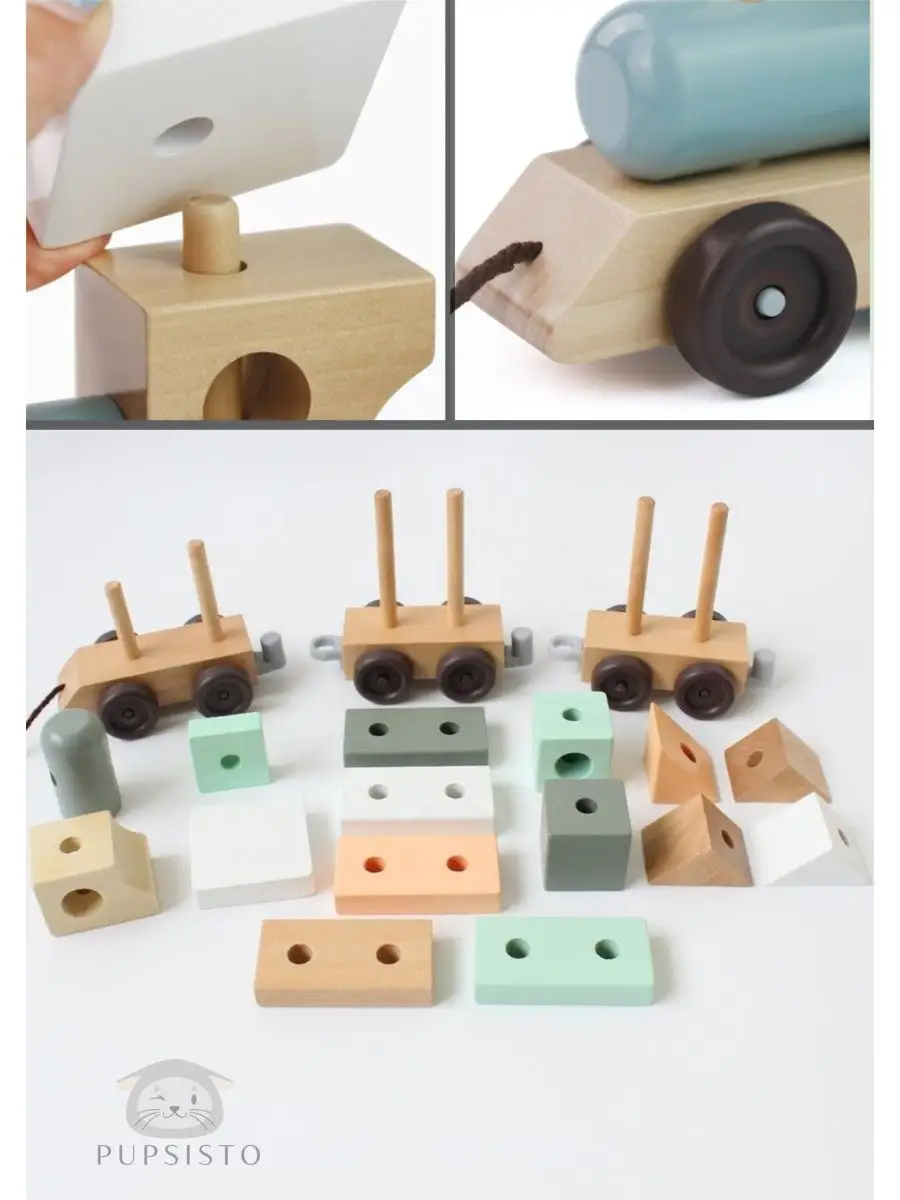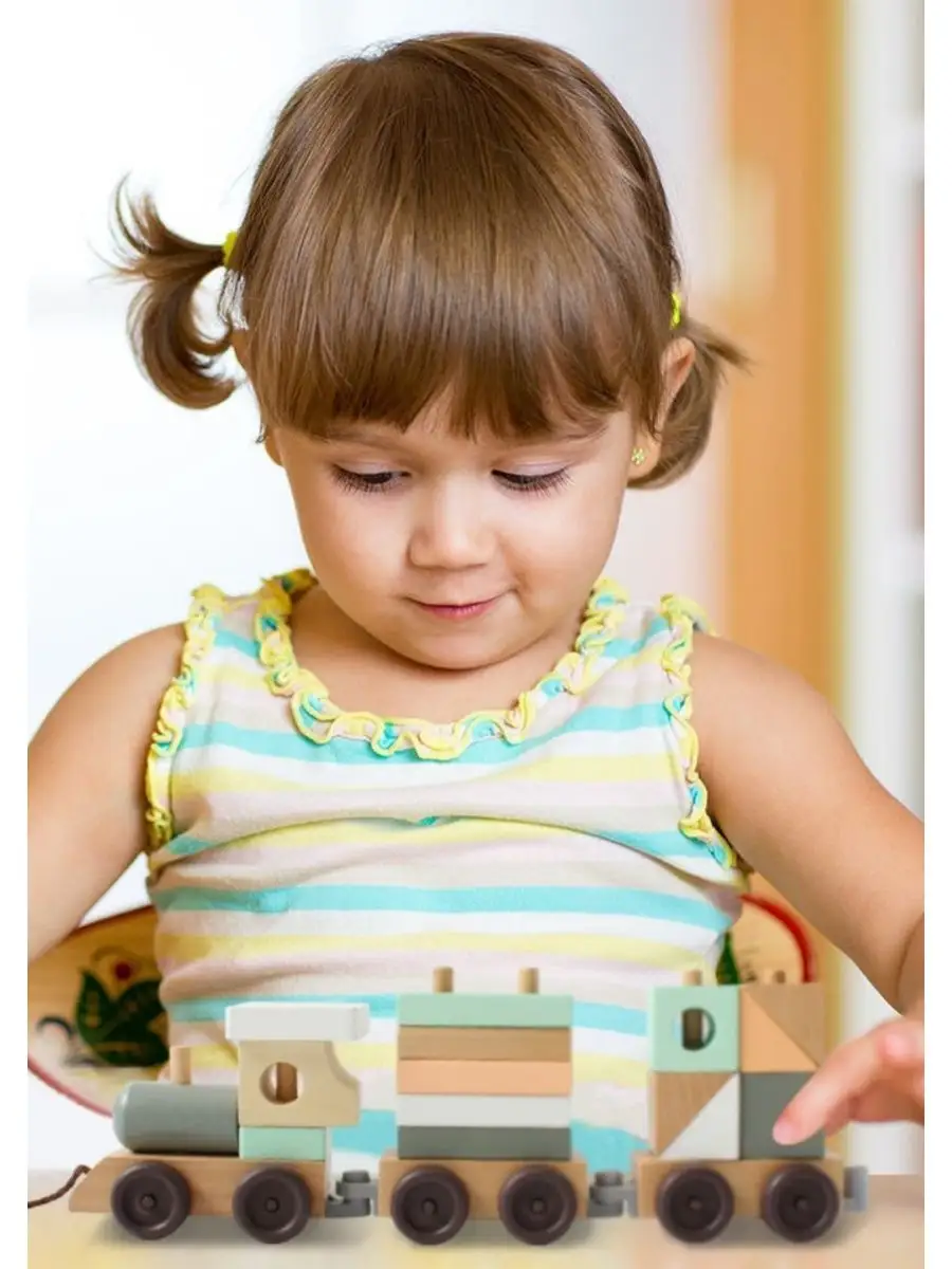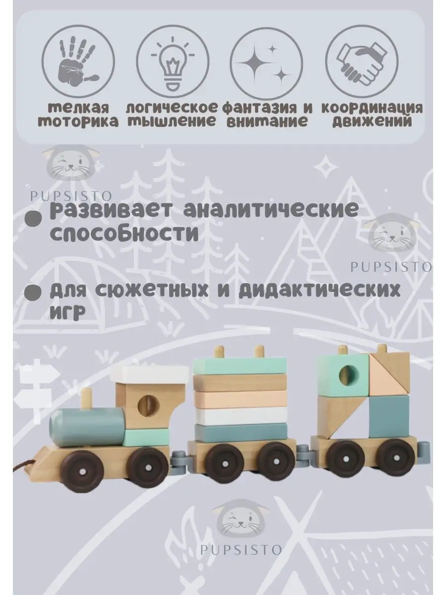 Комплектация поезд; 3 вагона; деревянные формы; шнурок