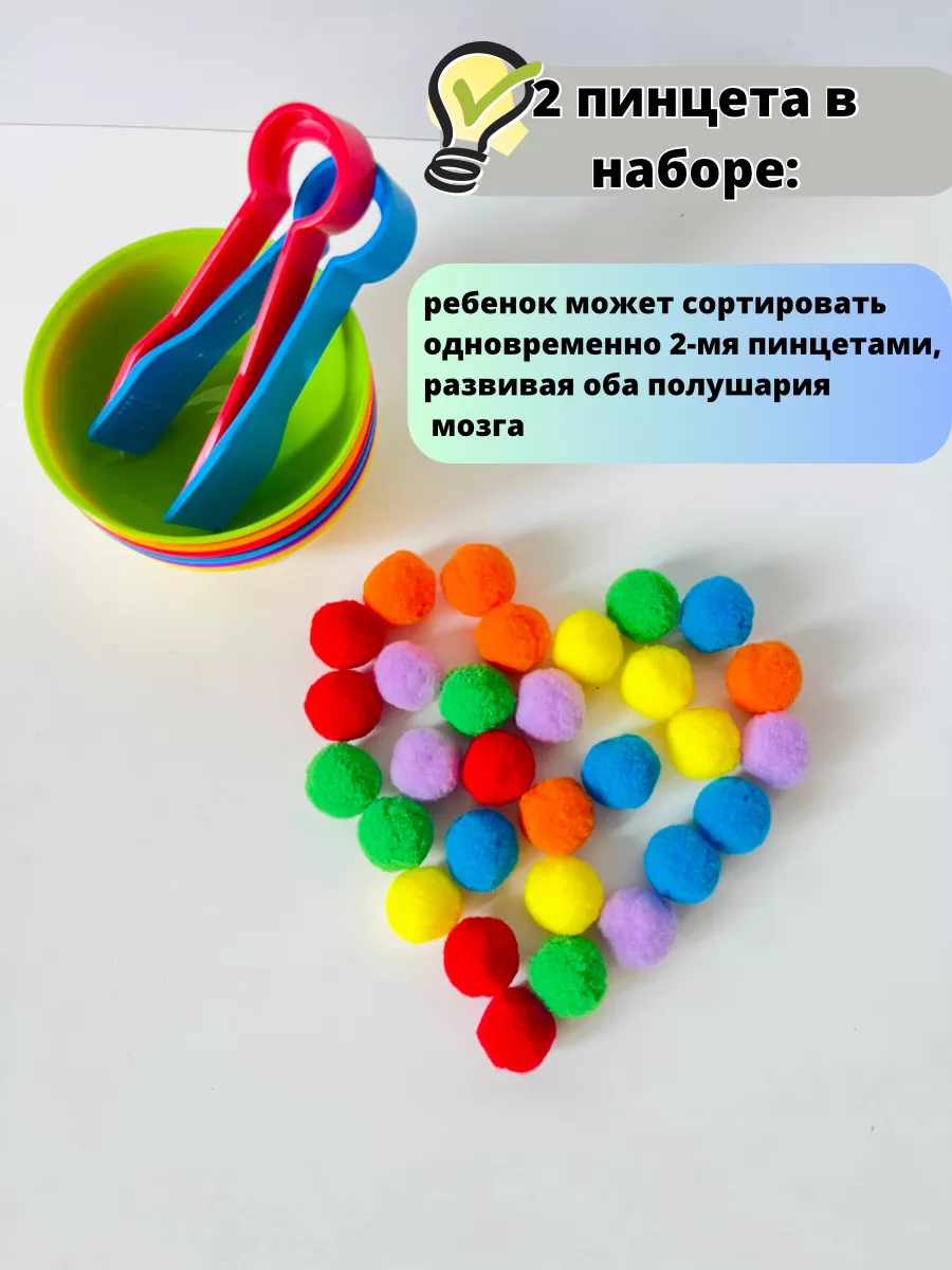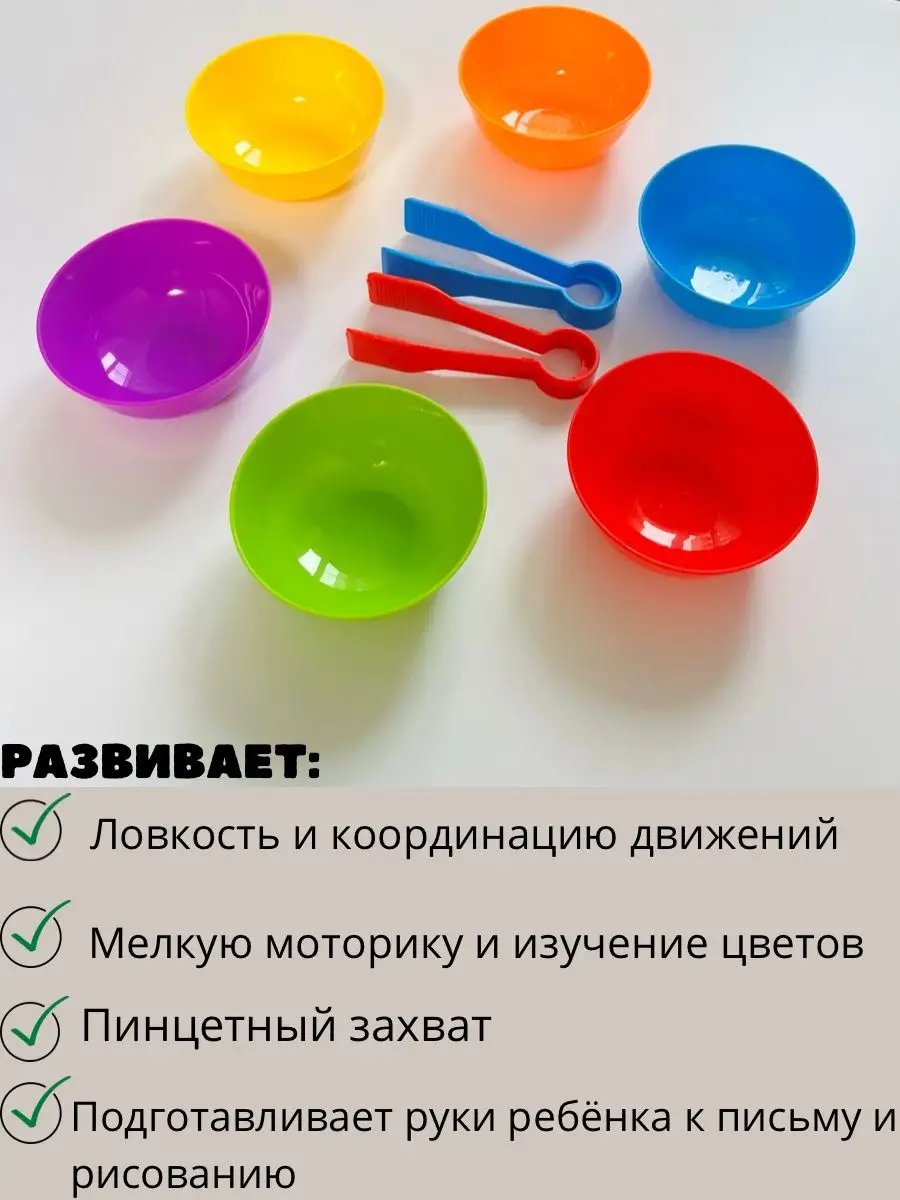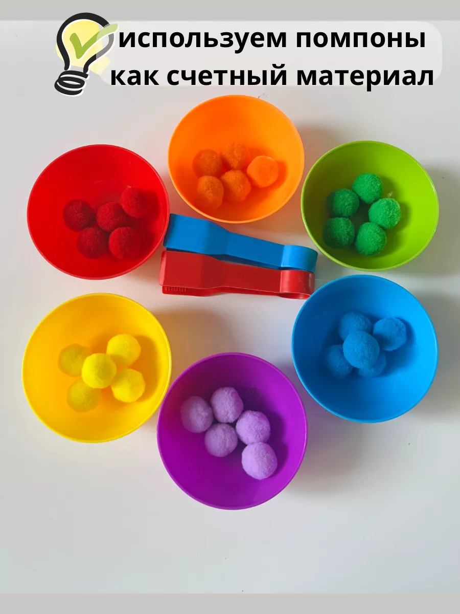 Сортер по цветам с тарелочками,пинцетами и помпонами,счет