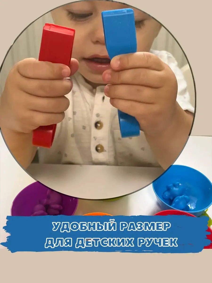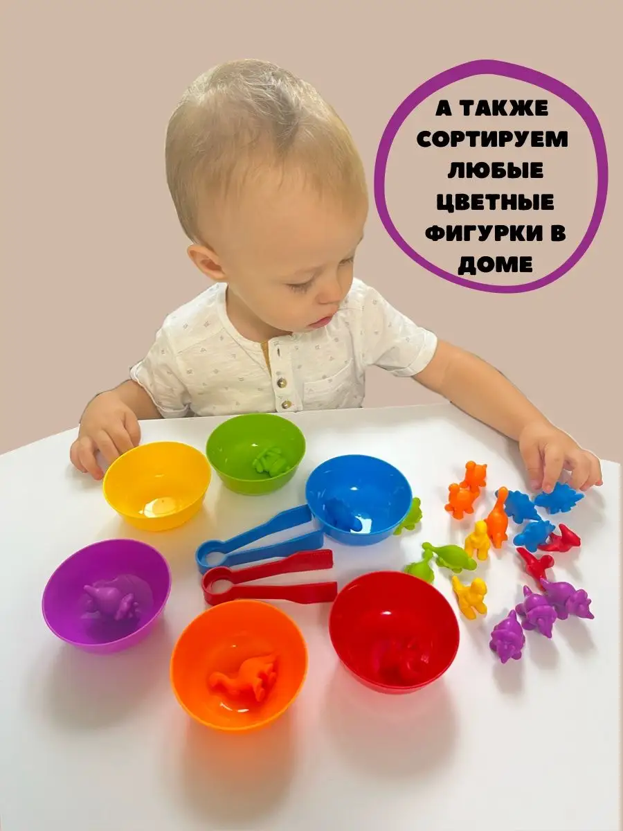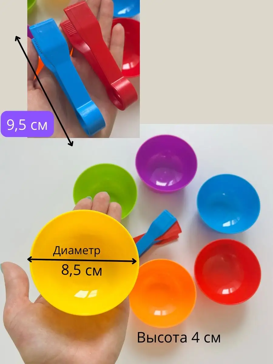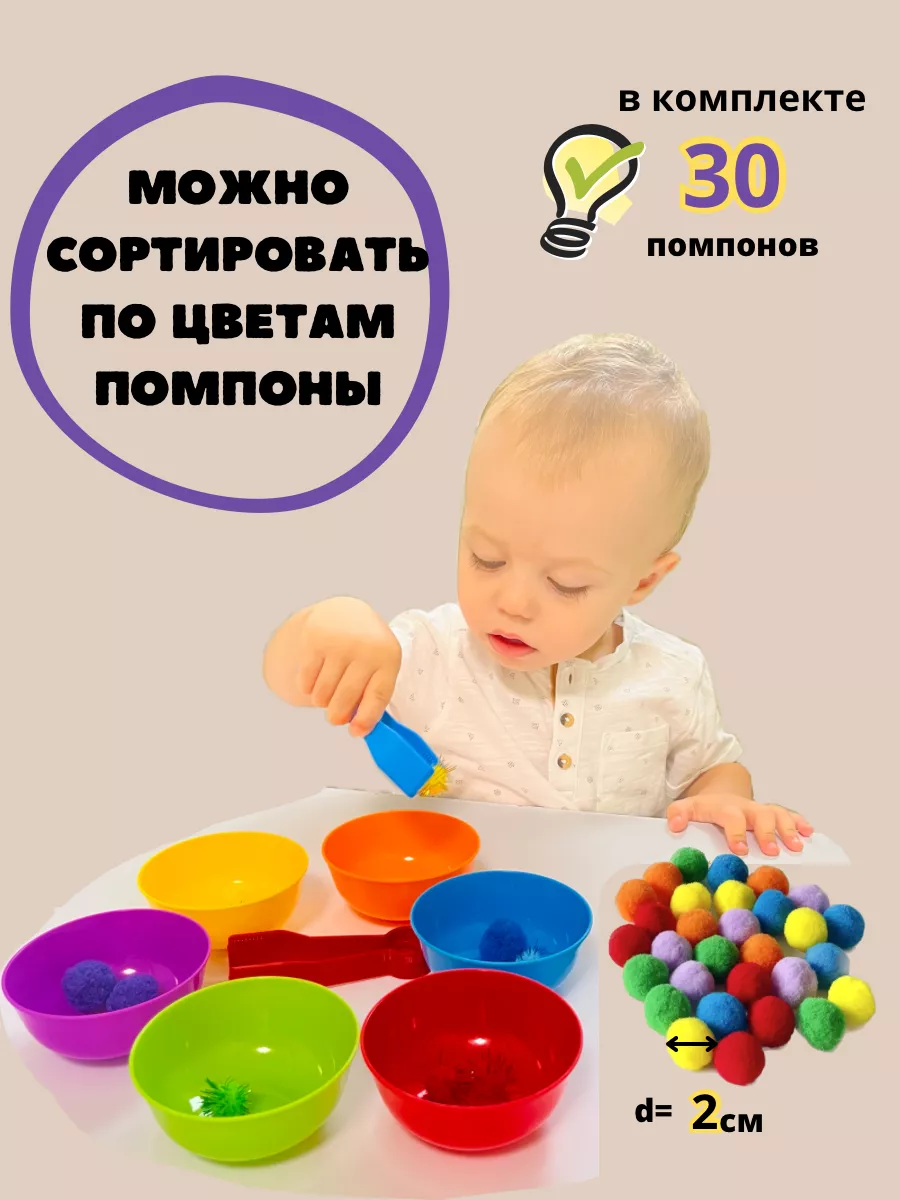 Сортер по цветам с тарелочками,пинцетами и помпонами,счет