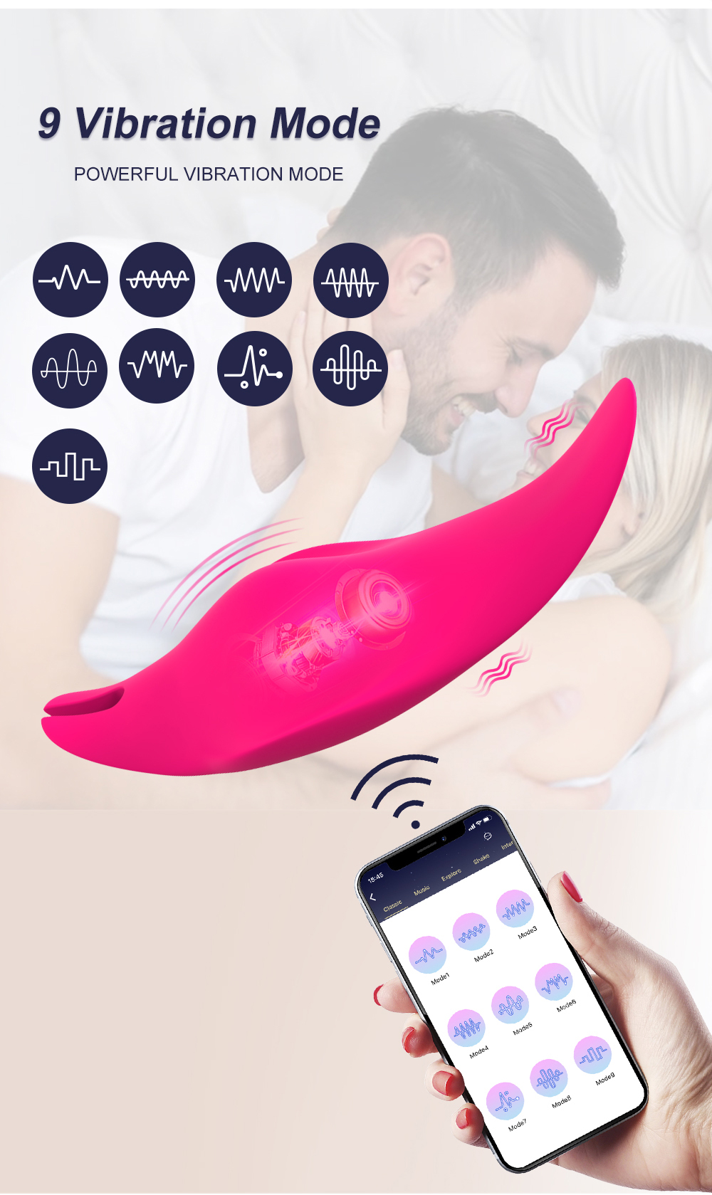 Это позволит вам наслаждаться 6 различными режимами стимуляции и даст вам лучший пользовательский опыт. Благодаря 2 двигателям и 6 различным режимам вы можете переключать режим вибрации в соответствии с вашими потребностями или позами. Вибрация сделает вас перегруженными, дрожащими и погруженными в ваше удовольствие.
