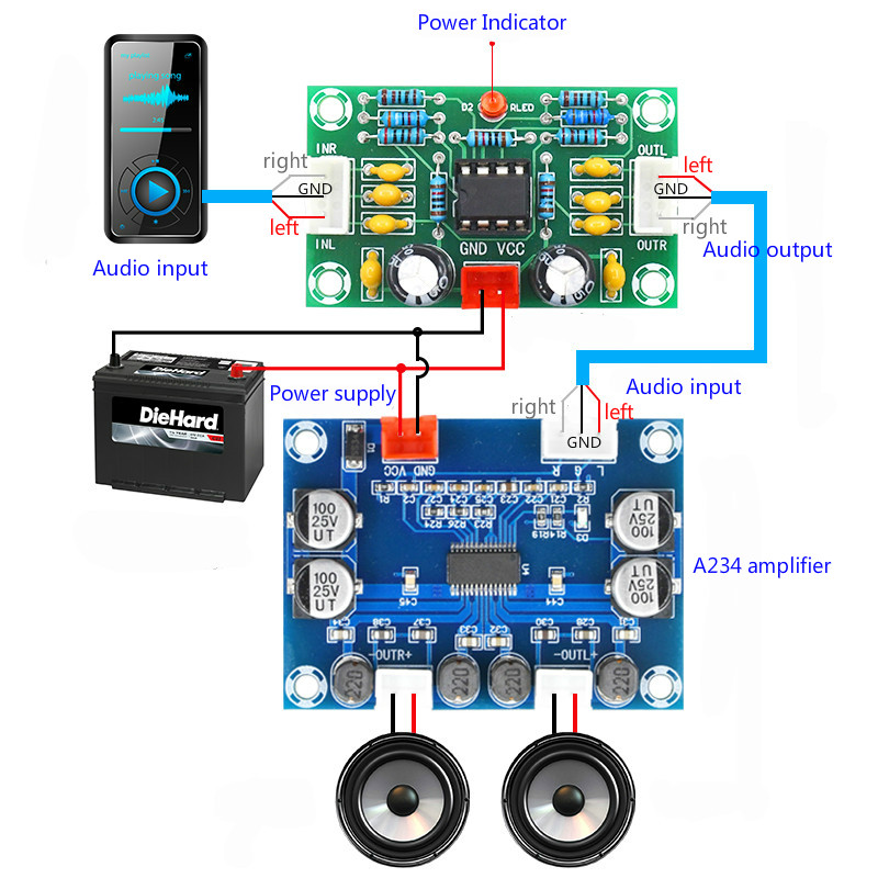 XH-A902 Плата предварительного усилителя звука-это предусилитель звука. Его нельзя напрямую подключить к динамику. Его необходимо подключить к усилителю на аудиовыходе.