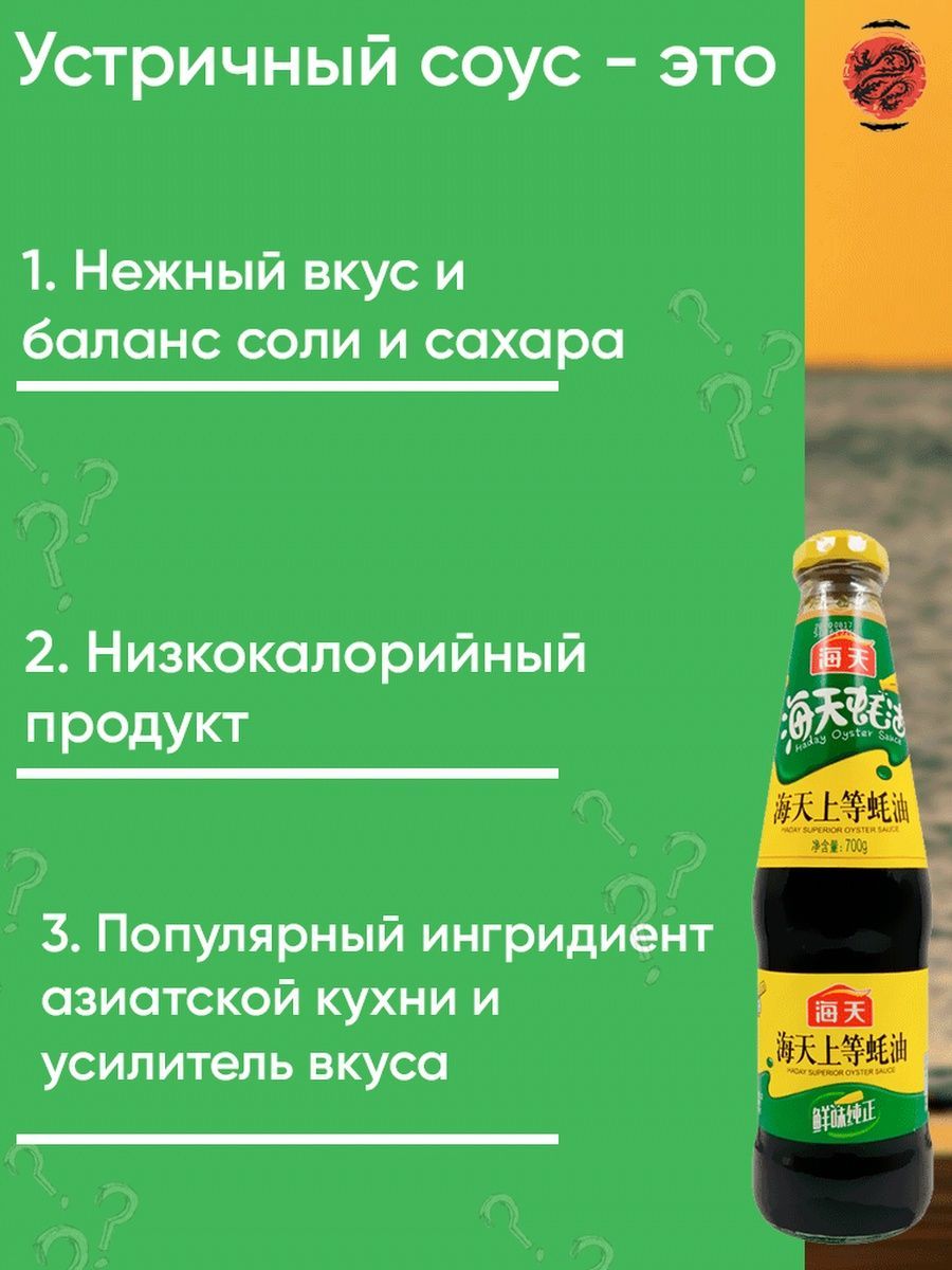 О том, как устричный соус появился в Китае уже и никто не помнит, есть миф о том, что якобы рыбак, варивший устриц уснул, устрицы переварились - вот так и появился устричный соус! Сейчас же устричный соус получают путем смешивания таких компонентов как устричный экстракт, (который как раз и получают из устриц, путем их вываривания, прессования и т.д.),чистейшей воды, кармели, крахмала, различных специй. Устричный соус по виду это густая темная паста, с сладковатым вкусом морепродуктов и характерным запахом. Использовать устичный соус можно практически везде, но особенно хорош он при добавлении его в мясные блюда. Вкус его очень приятен и является гордостью Контонской, да в принципе, и всей китайской кухни. Из Китая соус распространился по Юго-Восточной Азии, так что вьетнамскую и тайскую кухню уже сложно представить без этого соуса, а в конце позапрошлого века устричный соус распространился и по Европе!