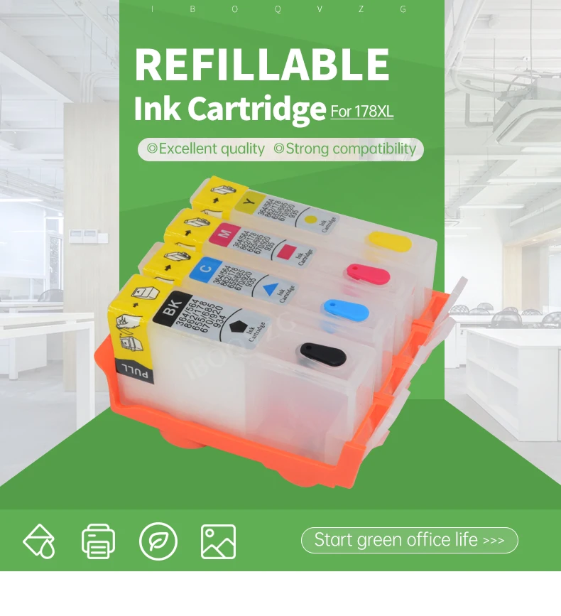 IBOQVZG для HP 178 178XL совместимые заправляемые картриджи с чернилами Photosmart B8553 C5383 C6383 D5463 B010 B109c B110a B209b B210 C309h