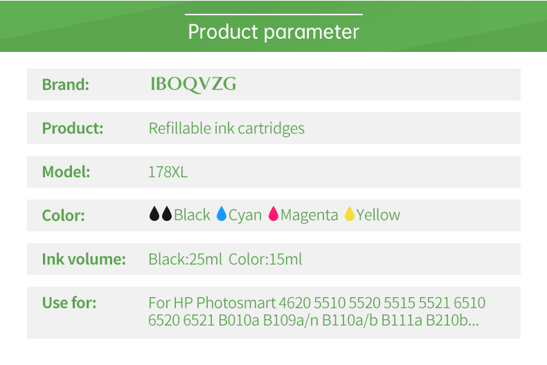 Совместимые чернильные картриджи IBOQVZG для HP 178 178XL Photosmart B8553 C5383 C6383 D5463 B010 B109c B110a B209b B210 C309h