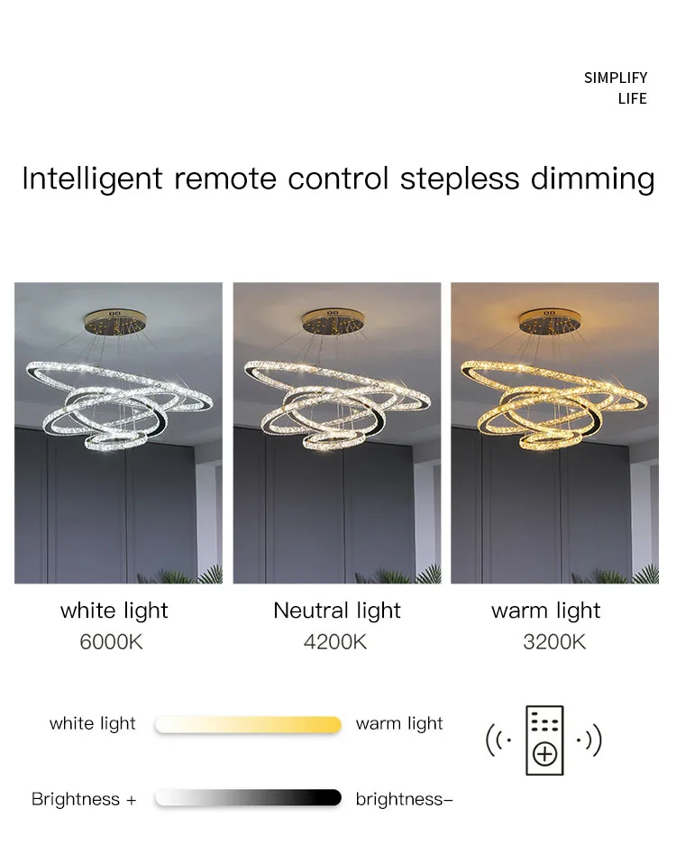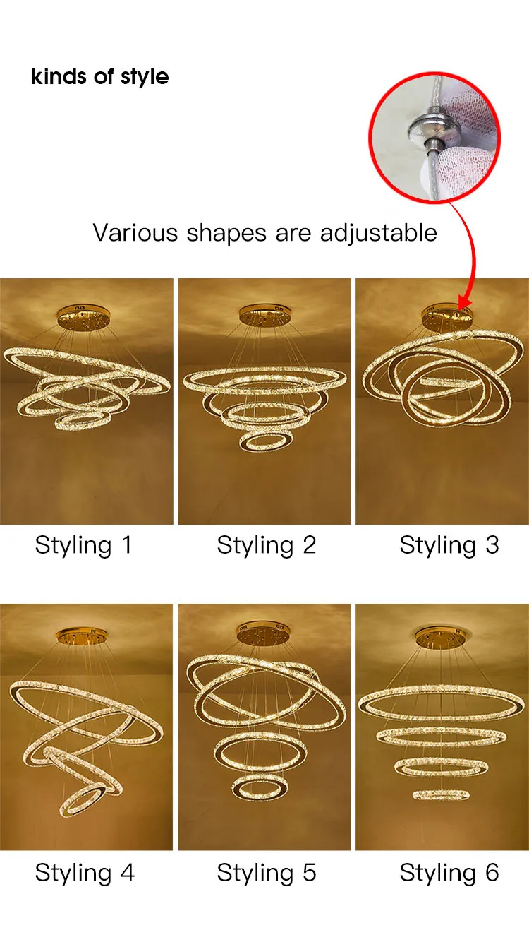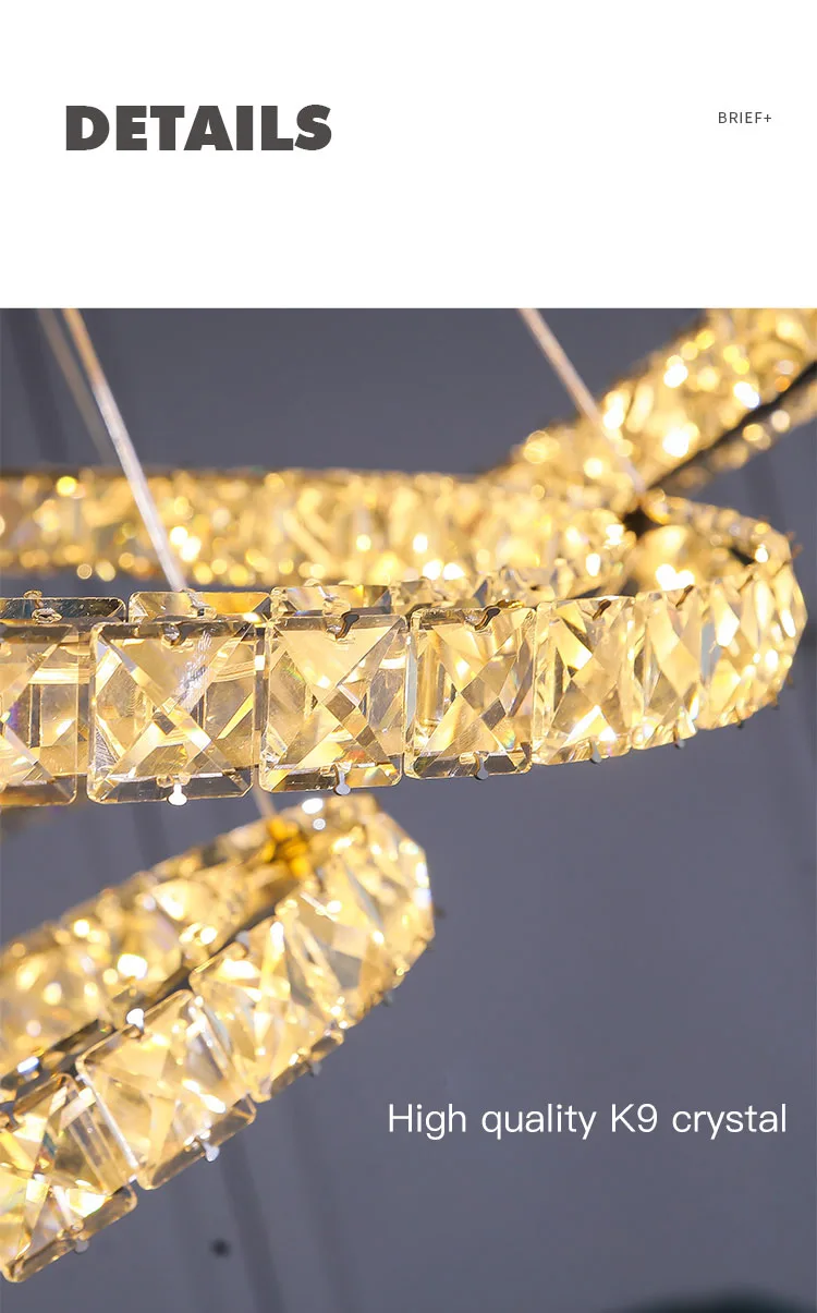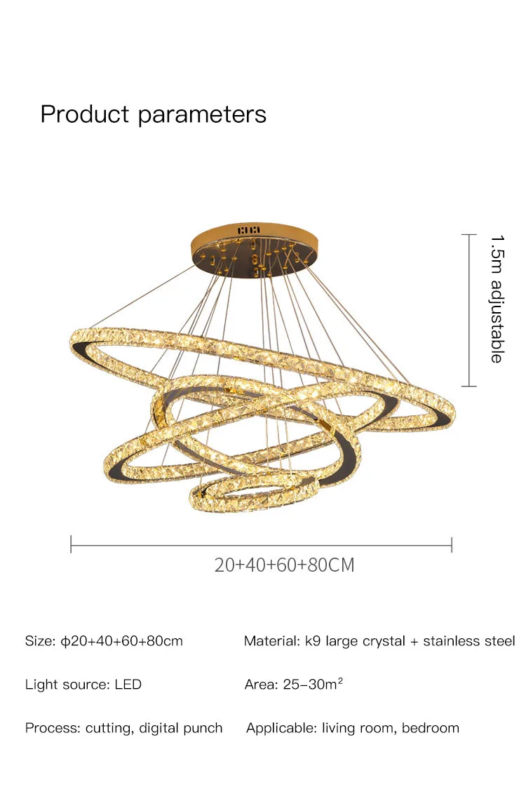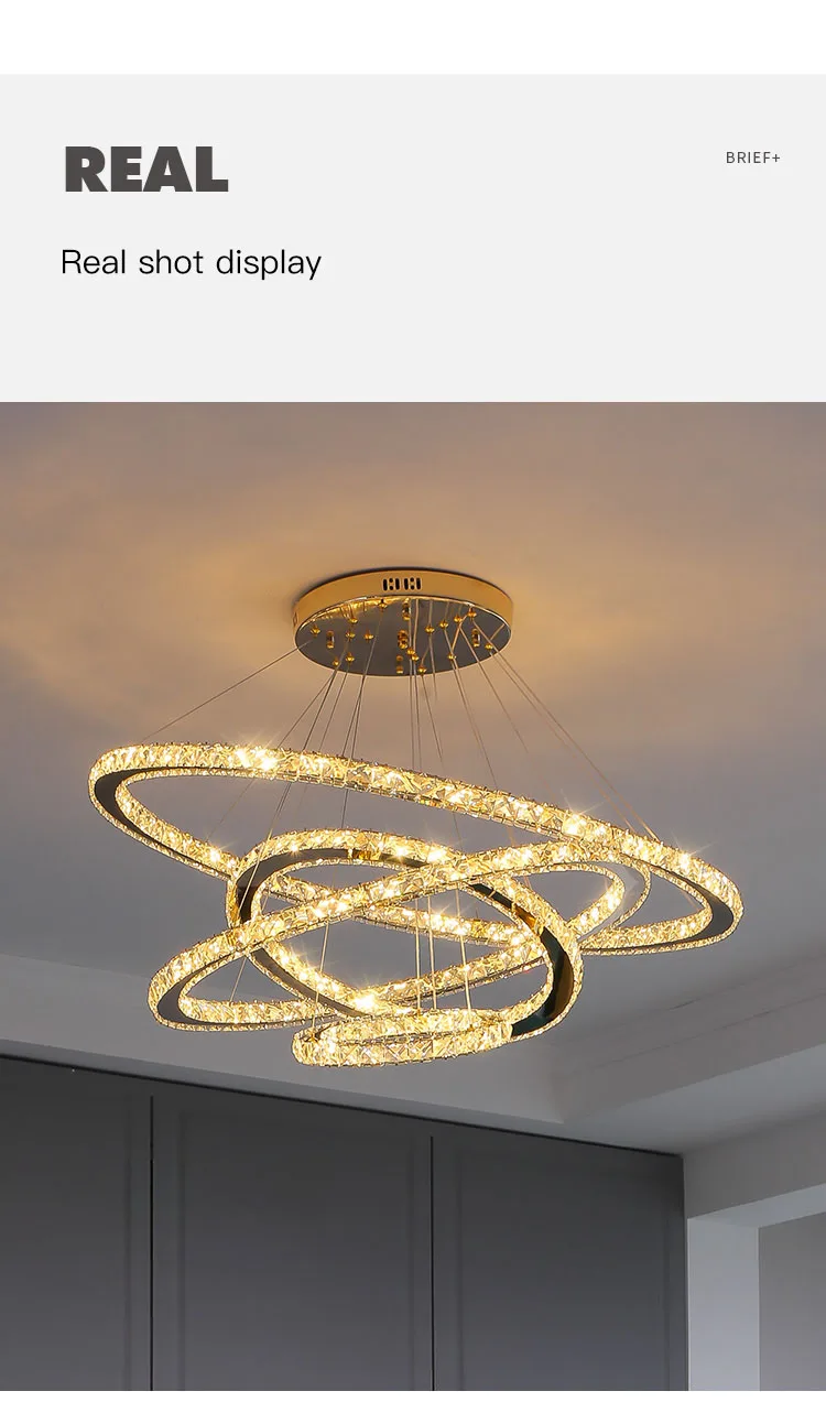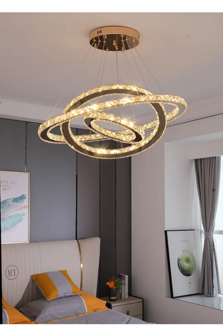Современная хрустальная светодиодная Люстра для гостиной, столовой, кухни с дистанционным управлением, Золотое кольцо, подвесное освещение