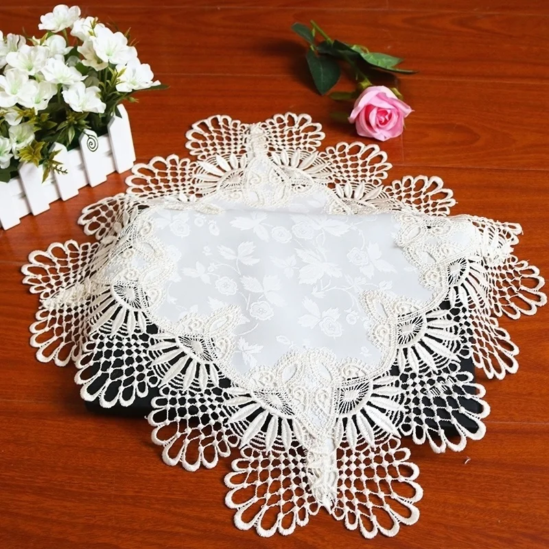Современная Мода парча Водорастворимая Вышивка Простая подставка для салфеток балкон кофе маленький круглый стол коврик Мебель Пылезащитная Рождественские Свадебные украшения ткань