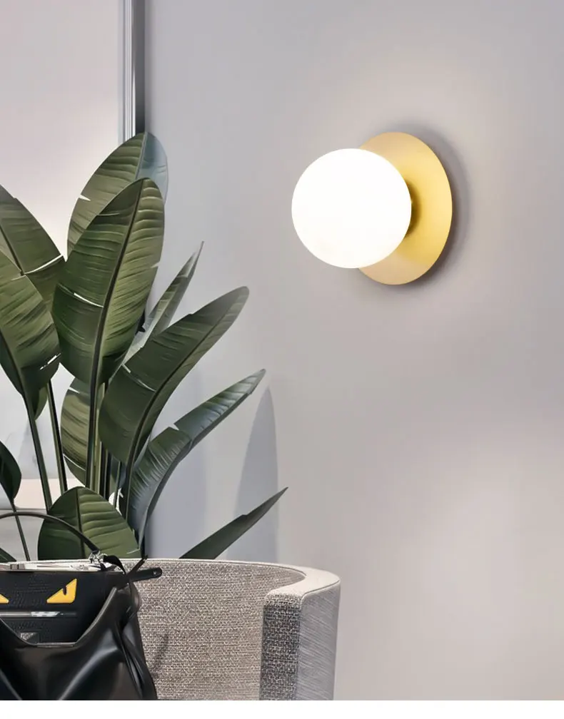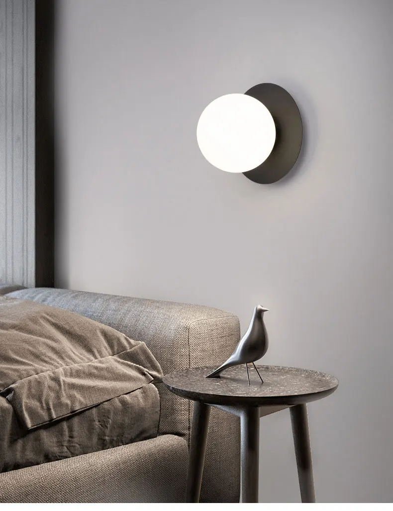 Современная светодиодная настенная лампа в скандинавском стиле, стеклянный шар, лампы для спальни, прикроватные лампы E27, декоративное освещение для помещений
