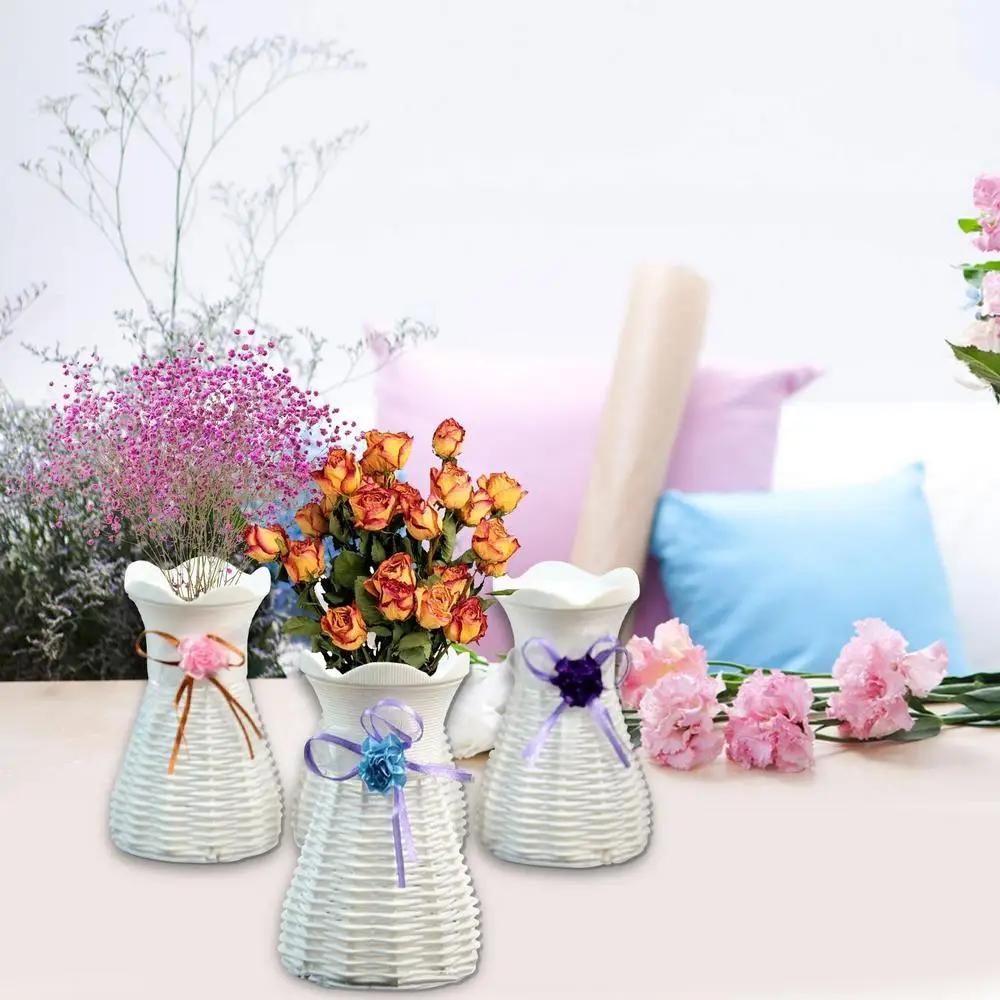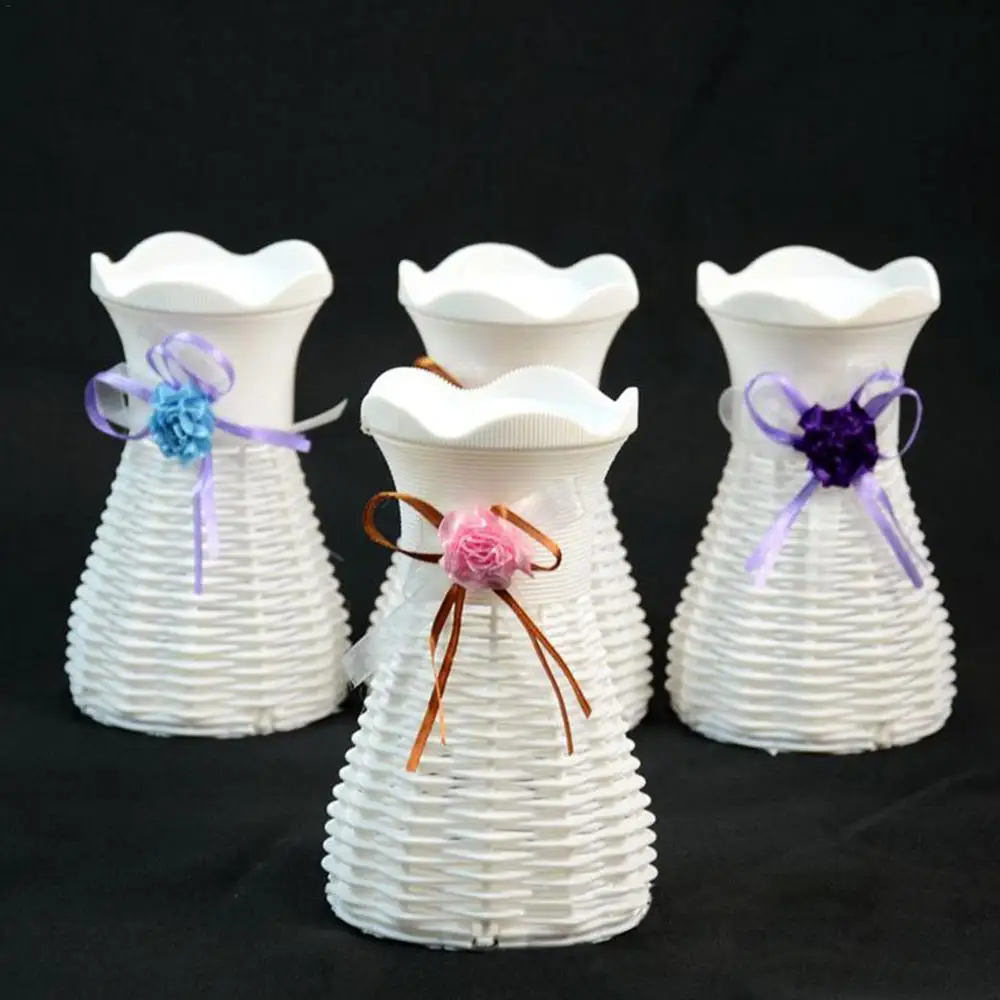 Современные пластиковые вазы, Европейский обеденный стол, декоративная ваза для цветочных растений, белая ваза из ротанга
