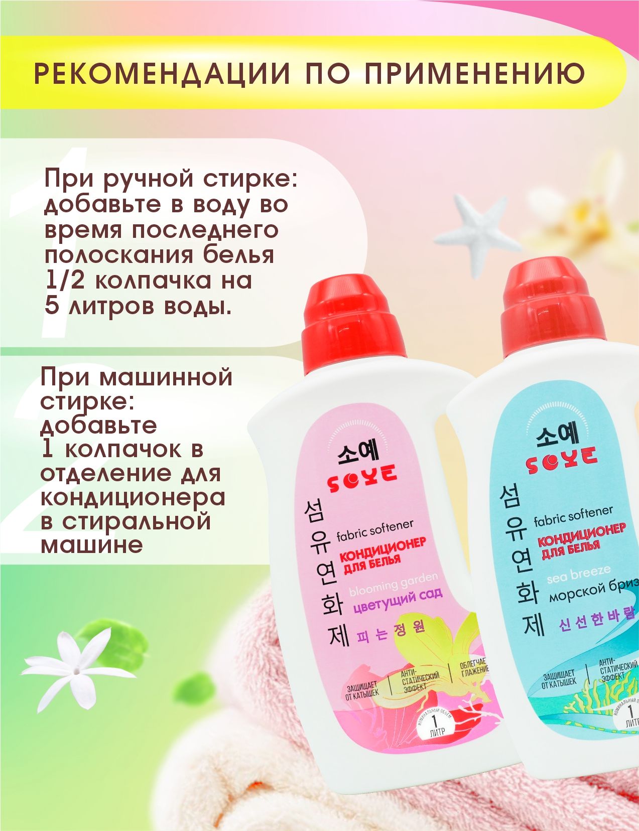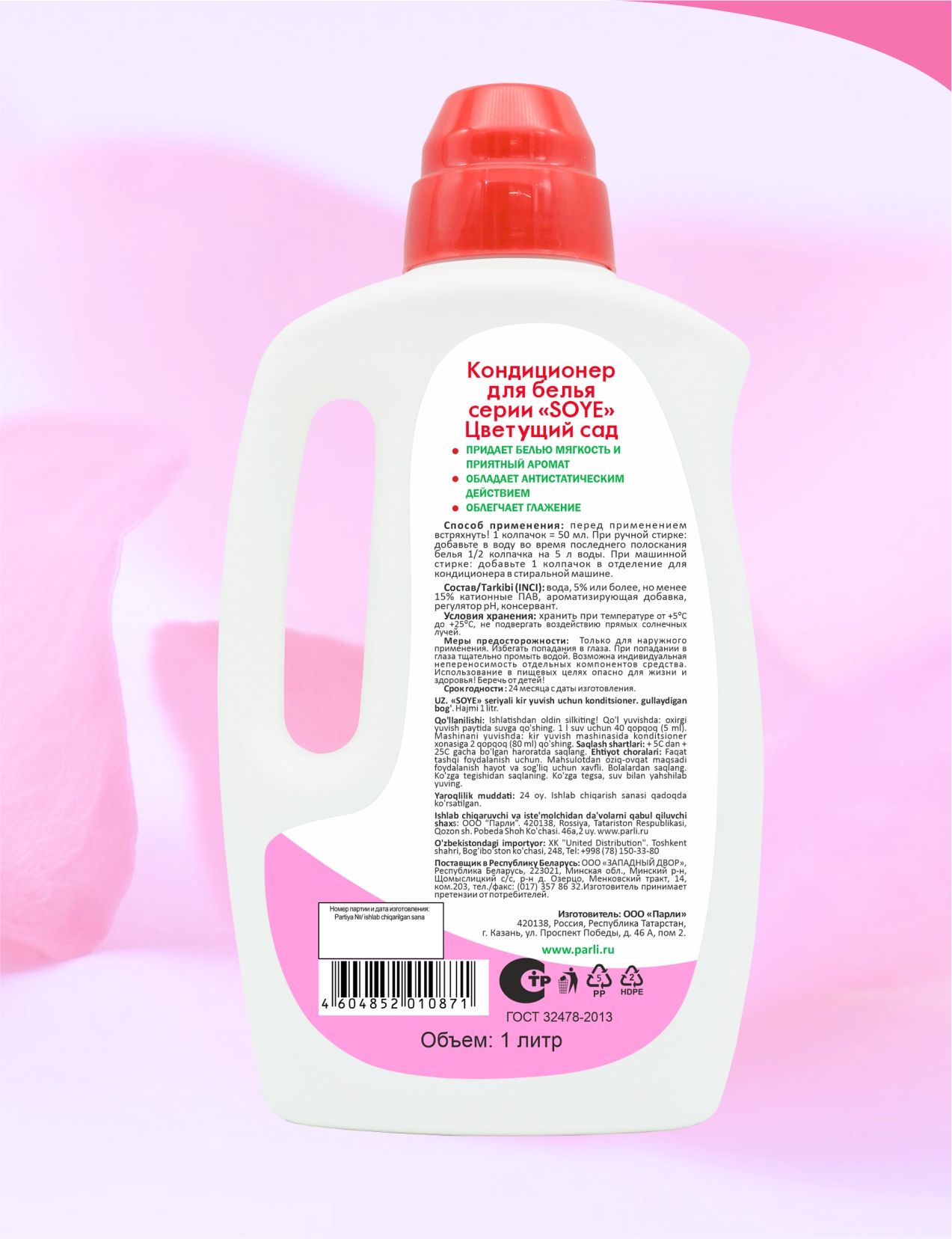 Soye Кондиционер для белья цветущий сад смягчает придает аромат цветов 1000 мл - 1 шт